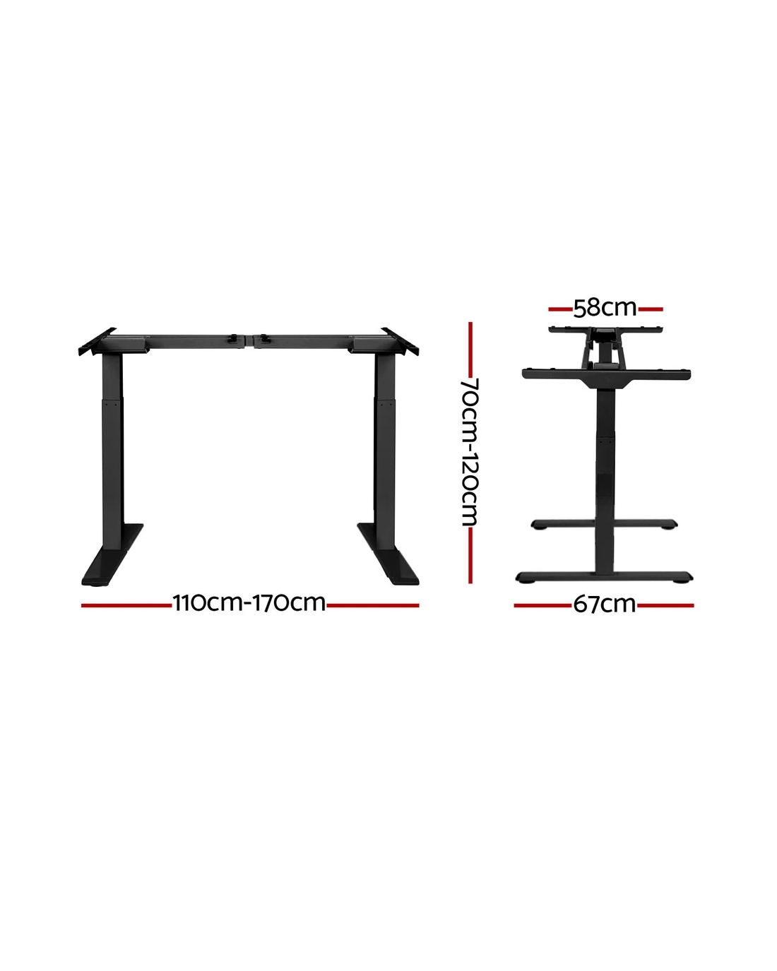 Poor posture and sedentary lifestyles contribute to several health issues. Now keep your health in good shape with Artiss motorised sit and stand desk frame! It's designed to go with our Artiss desktop and won't disappoint you either with its quality or aesthetics. With our innovative height-adjustable desk frame, you can stand while working and stretch and engage your muscles to prevent them from weakening. Our desk frame features an easy-to-use digital control panel. It enables you to save up to three preset heights and set a sit/stand reminder system. And the smooth-functioning dual motors allow ultra-quiet operation with low energy consumption. Furthermore, our high-quality powder-coated desk frame makes cleaning and maintenance easy and ensures ultimate sturdiness. It also comes with adjustable rubber foot pads that offer extra stability and keep your floors safe. Get yourself Artiss sit/stand desk frame to prevent fatigue and improve productivity.