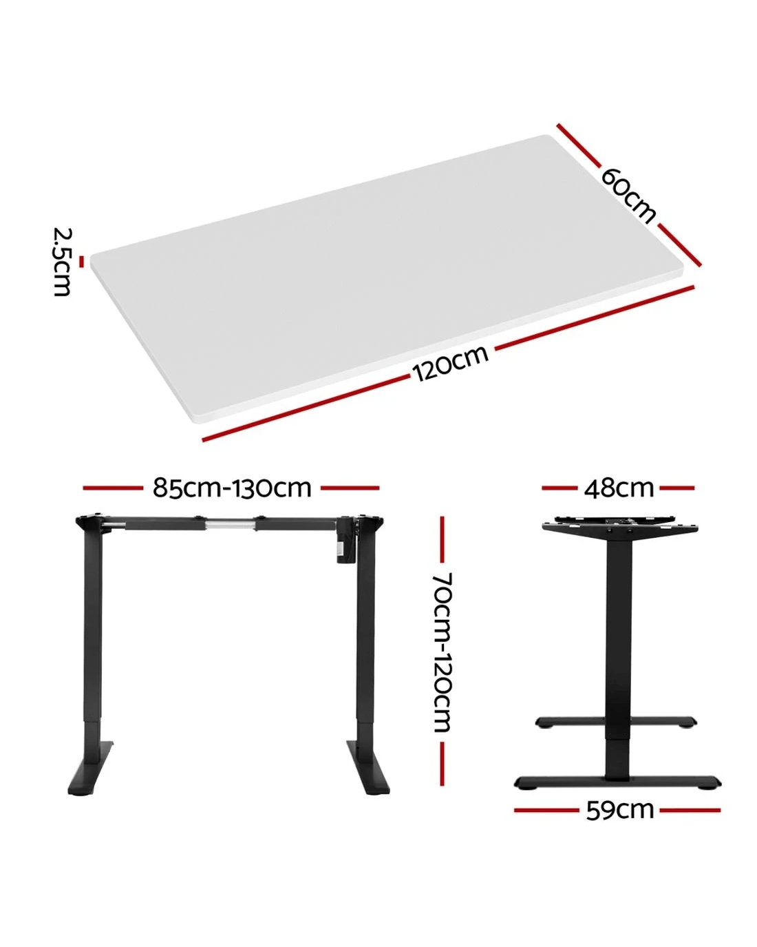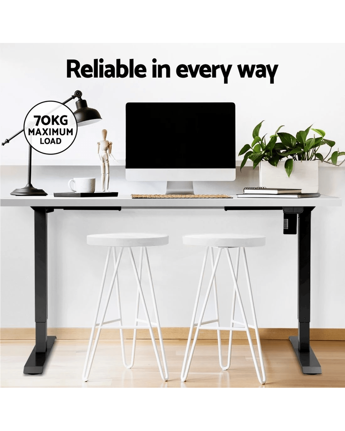 Poor posture and sedentary lifestyles contribute to several health issues. Now keep your health in good shape with the Artiss Motorised Adjustable Desk Frame! Designed to go with our Artiss Desktop, it won't disappoint you either with its quality or aesthetics. With our innovative height-adjustable desk frame, you can stand while working and stretch and engage your muscles to prevent them from weakening. Our desk frame features an easy-to-use digital control panel that enables you to easily adjust the desk to a suitable height and ensure your comfort while working. The smooth motors allow for ultra-quiet operation with low energy consumption. Our high-quality powder-coated desk frame makes cleaning and maintenance easy and ensures ultimate sturdiness. It also comes with adjustable rubber foot pads that offer extra stability and keep your floors safe. As for the desktop, it comes with pre-drilled holes for easy installation. It is made from eco-friendly particleboard and comes with a natural wood grain or contemporary matte finish to create a smooth surface and a beautiful aesthetic. The desktop is scratch resistant and perfect for all your working needs. Get yourself Artiss Motorised Adjustable Desk Frame and Desktop to prevent fatigue and improve productivity.