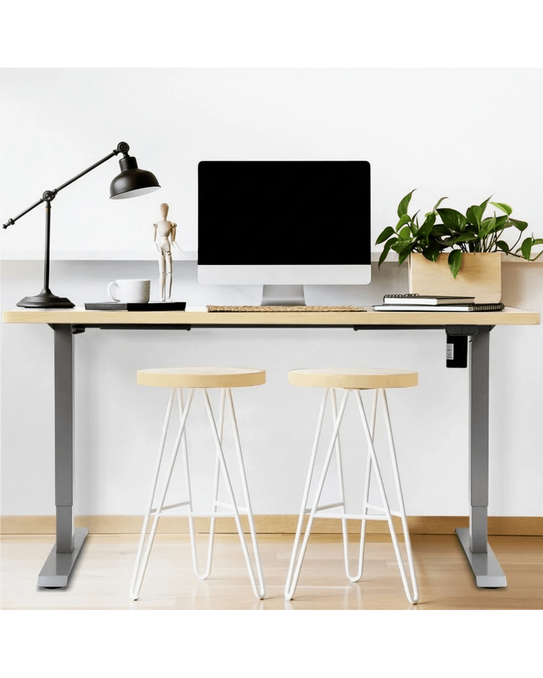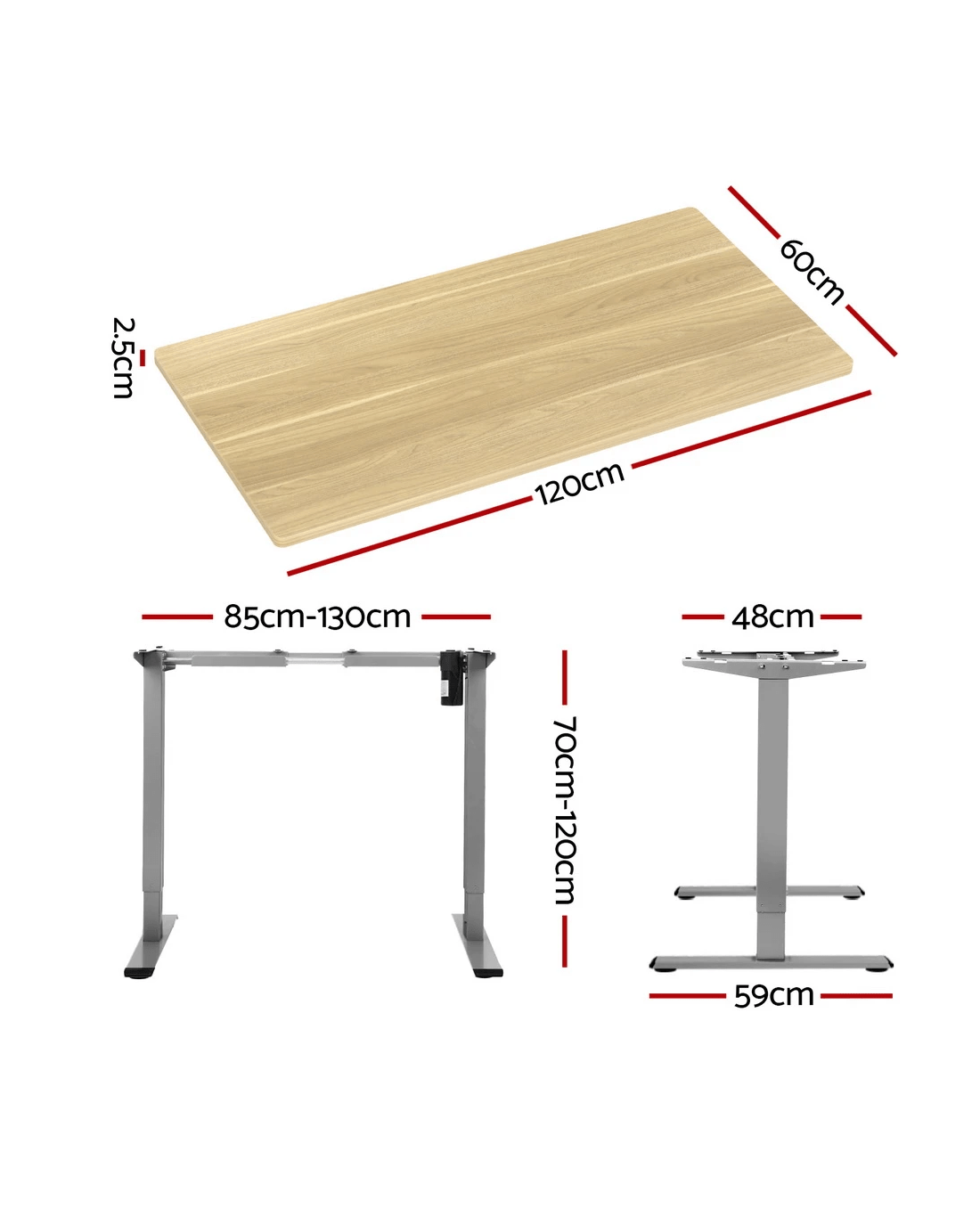 Poor posture and sedentary lifestyles contribute to several health issues. Now keep your health in good shape with the Artiss Motorised Adjustable Desk Frame! Designed to go with our Artiss Desktop, it won't disappoint you either with its quality or aesthetics. With our innovative height-adjustable desk frame, you can stand while working and stretch and engage your muscles to prevent them from weakening. Our desk frame features an easy-to-use digital control panel that enables you to easily adjust the desk to a suitable height and ensure your comfort while working. The smooth motors allow for ultra-quiet operation with low energy consumption. Our high-quality powder-coated desk frame makes cleaning and maintenance easy and ensures ultimate sturdiness. It also comes with adjustable rubber foot pads that offer extra stability and keep your floors safe. As for the desktop, it comes with pre-drilled holes for easy installation. It is made from eco-friendly particleboard and comes with a natural wood grain or contemporary matte finish to create a smooth surface and a beautiful aesthetic. The desktop is scratch resistant and perfect for all your working needs. Get yourself Artiss Motorised Adjustable Desk Frame and Desktop to prevent fatigue and improve productivity.