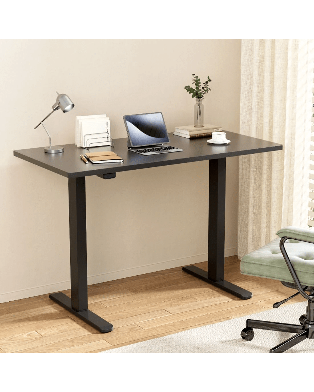 Poor posture and sedentary lifestyles contribute to several health issues. Now keep your health in good shape with the Artiss Motorised Adjustable Desk Frame! Designed to go with our Artiss Desktop, it won't disappoint you either with its quality or aesthetics. With our innovative height-adjustable desk frame, you can stand while working and stretch and engage your muscles to prevent them from weakening. Our desk frame features an easy-to-use digital control panel that enables you to easily adjust the desk to a suitable height and ensure your comfort while working. The smooth motors allow for ultra-quiet operation with low energy consumption. Our high-quality powder-coated desk frame makes cleaning and maintenance easy and ensures ultimate sturdiness. It also comes with adjustable rubber foot pads that offer extra stability and keep your floors safe. As for the desktop, it comes with pre-drilled holes for easy installation. It is made from eco-friendly particleboard and comes with a natural wood grain or contemporary matte finish to create a smooth surface and a beautiful aesthetic. The desktop is scratch resistant and perfect for all your working needs. Get yourself Artiss Motorised Adjustable Desk Frame and Desktop to prevent fatigue and improve productivity.