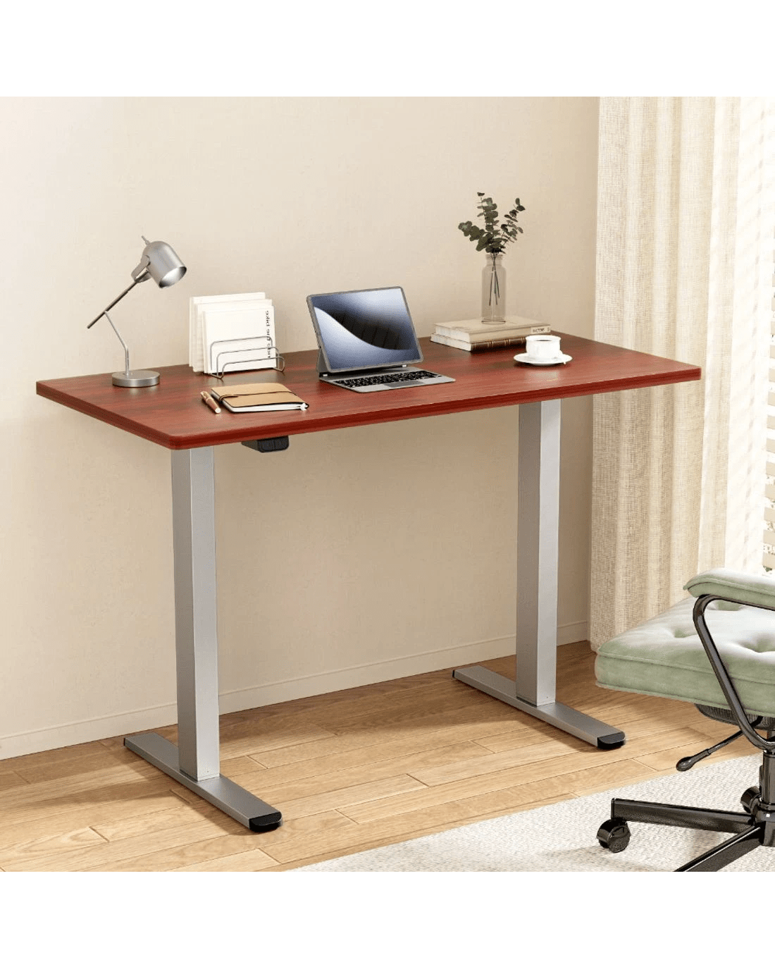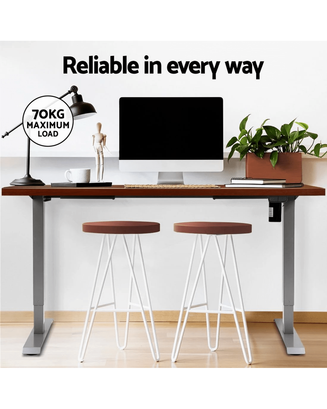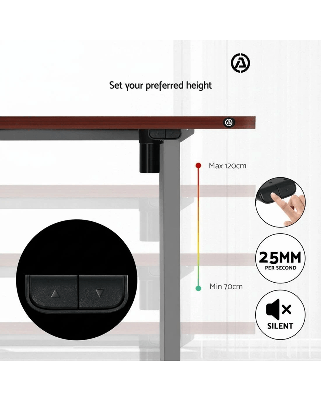 Poor posture and sedentary lifestyles contribute to several health issues. Now keep your health in good shape with Artiss Motorised Adjustable Desk Frame! Designed to go with our Artiss Desktop, it won't disappoint you either with its quality or aesthetics. With our innovative height-adjustable desk frame, you can stand while working and stretch and engage your muscles to prevent them from weakening. Our desk frame features an easy-to-use digital control panel that enables you to easily adjust the desk to a suitable height and ensure your comfort while working. The smooth motors allow for ultra-quiet operation with low energy consumption. Our high-quality powder-coated desk frame makes cleaning and maintenance easy and ensures ultimate sturdiness. It also comes with adjustable rubber foot pads that offer extra stability and keep your floors safe. As for the desktop, it comes with pre-drilled holes for easy installation. It is made from eco-friendly particleboard and comes with a natural wood grain or contemporary matte finish to create a smooth surface and a beautiful aesthetic. The desktop is scratch resistant and perfect for all your working needs. Get yourself Artiss Motorised Adjustable Desk Frame and Desktop to prevent fatigue and improve productivity.![]()
