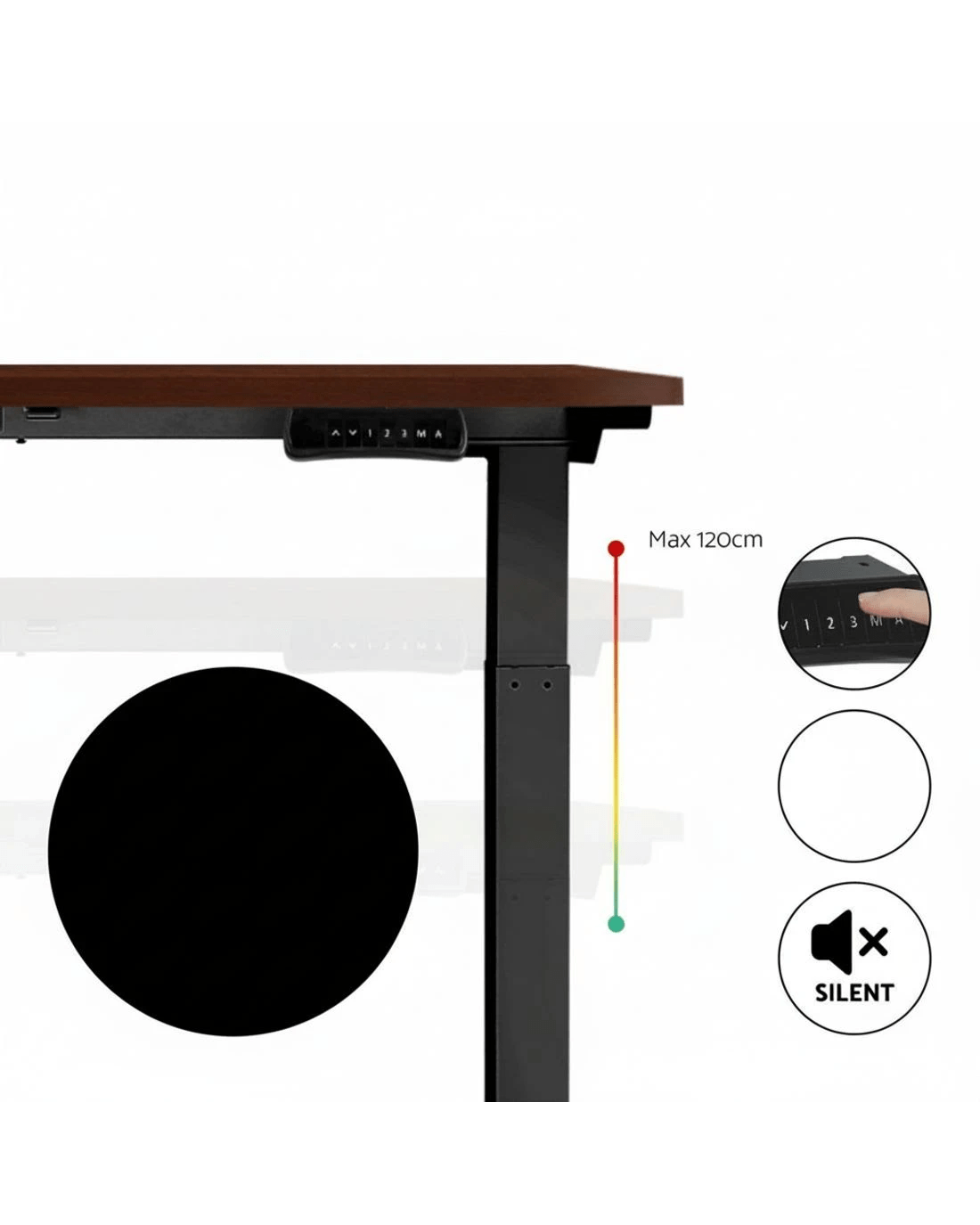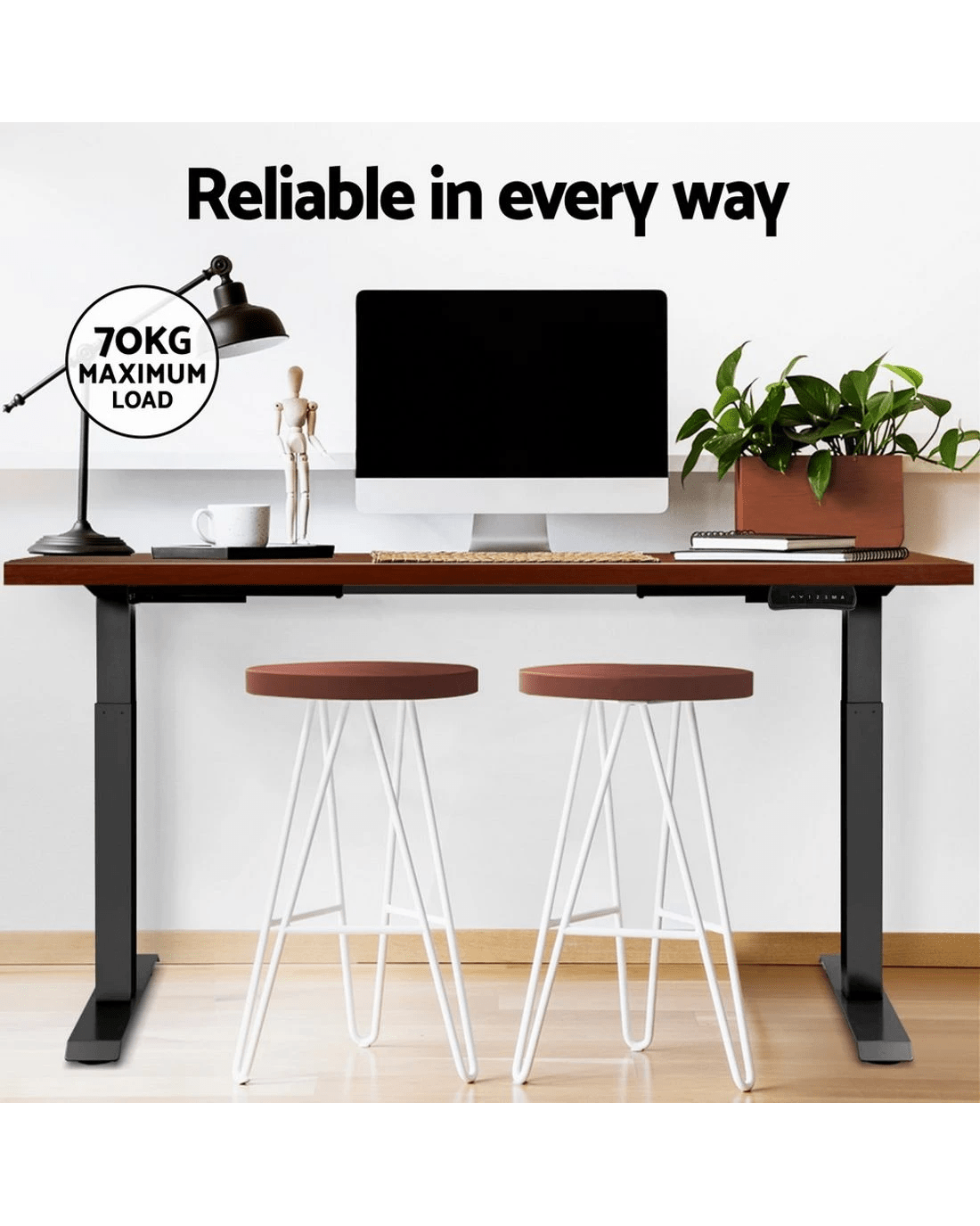 Poor posture and sedentary lifestyles contribute to several health issues. Now keep your health in good shape with the Artiss Motorised Adjustable Desk Frame! Designed to go with our Artiss Desktop, it won't disappoint you either with its quality or aesthetics. With our innovative height-adjustable desk frame, you can stand while working and stretch and engage your muscles to prevent them from weakening. Our desk frame features an easy-to-use digital control panel that enables you to easily adjust the desk to a suitable height and ensure your comfort while working. Save up to 3 pre-set heights so you can instantly get comfortable whenever you need. The smooth motors allow for ultra-quiet operation with low energy consumption. Our high-quality powder-coated desk frame makes cleaning and maintenance easy and ensures ultimate sturdiness. It also comes with adjustable rubber foot pads that offer extra stability and keep your floors safe. As for the desktop, it comes with pre-drilled holes for easy installation. It is made from eco-friendly particleboard and comes with a natural wood grain or contemporary matte finish to create a smooth surface and a beautiful aesthetic. The desktop is scratch resistant and perfect for all your working needs. Get yourself Artiss Motorised Adjustable Desk Frame and Desktop to prevent fatigue and improve productivity.