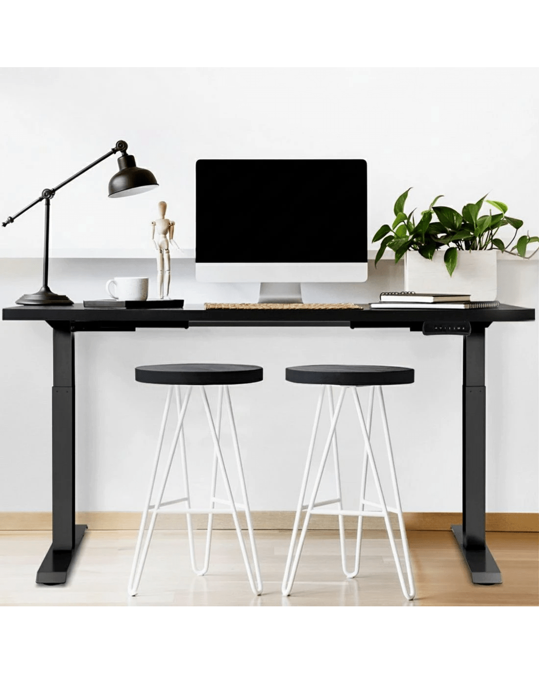 Poor posture and sedentary lifestyles contribute to several health issues. Now keep your health in good shape with the Artiss Motorised Adjustable Desk Frame! Designed to go with our Artiss Desktop, it won't disappoint you either with its quality or aesthetics. With our innovative height-adjustable desk frame, you can stand while working and stretch and engage your muscles to prevent them from weakening. Our desk frame features an easy-to-use digital control panel that enables you to easily adjust the desk to a suitable height and ensure your comfort while working. Save up to 3 pre-set heights so you can instantly get comfortable whenever you need. The smooth motors allow for ultra-quiet operation with low energy consumption. Our high-quality powder-coated desk frame makes cleaning and maintenance easy and ensures ultimate sturdiness. It also comes with adjustable rubber foot pads that offer extra stability and keep your floors safe. As for the desktop, it comes with pre-drilled holes for easy installation. It is made from eco-friendly particleboard and comes with a natural wood grain or contemporary matte finish to create a smooth surface and a beautiful aesthetic. The desktop is scratch resistant and perfect for all your working needs. Get yourself Artiss Motorised Adjustable Desk Frame and Desktop to prevent fatigue and improve productivity.