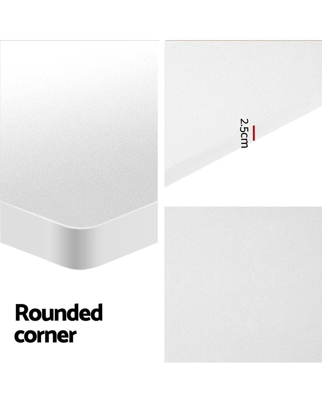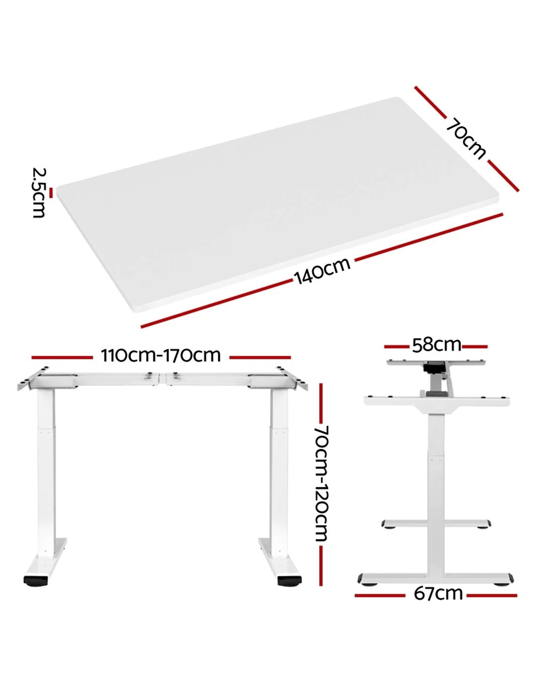 Poor posture and sedentary lifestyles contribute to several health issues. Now keep your health in good shape with the Artiss Motorised Adjustable Desk Frame! Designed to go with our Artiss Desktop, it won't disappoint you either with its quality or aesthetics. With our innovative height-adjustable desk frame, you can stand while working and stretch and engage your muscles to prevent them from weakening. Our desk frame features an easy-to-use digital control panel that enables you to easily adjust the desk to a suitable height and ensure your comfort while working. Save up to 3 pre-set heights so you can instantly get comfortable whenever you need. The smooth motors allow for ultra-quiet operation with low energy consumption. Our high-quality powder-coated desk frame makes cleaning and maintenance easy and ensures ultimate sturdiness. It also comes with adjustable rubber foot pads that offer extra stability and keep your floors safe. As for the desktop, it comes with pre-drilled holes for easy installation. It is made from eco-friendly particleboard and comes with a natural wood grain or contemporary matte finish to create a smooth surface and a beautiful aesthetic. The desktop is scratch resistant and perfect for all your working needs. Get yourself Artiss Motorised Adjustable Desk Frame and Desktop to prevent fatigue and improve productivity.