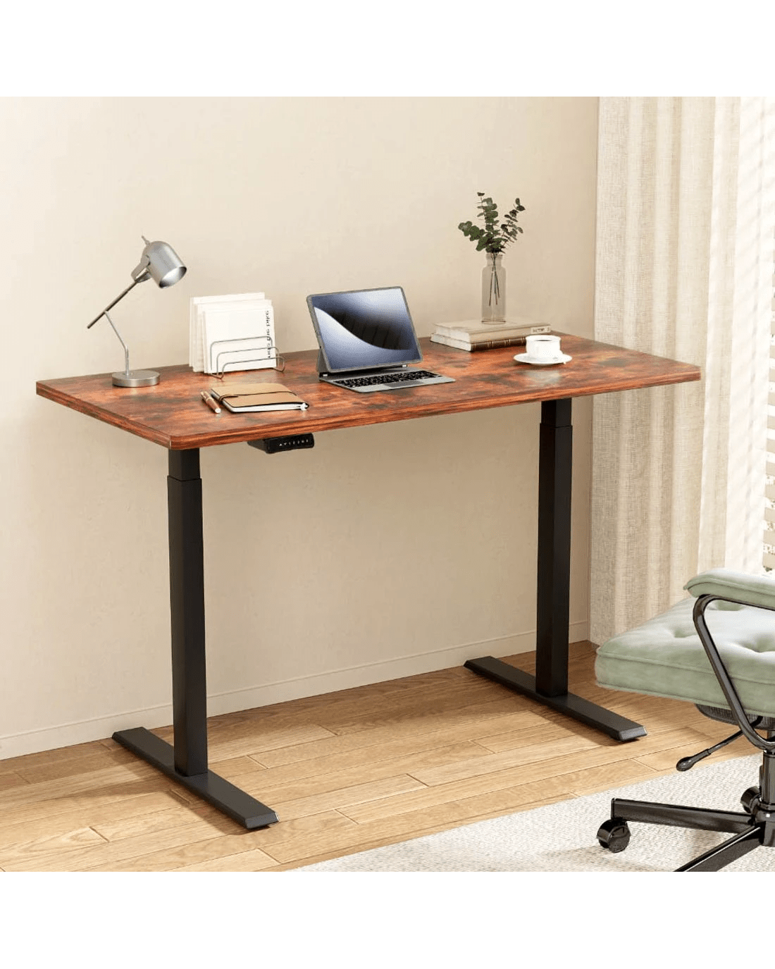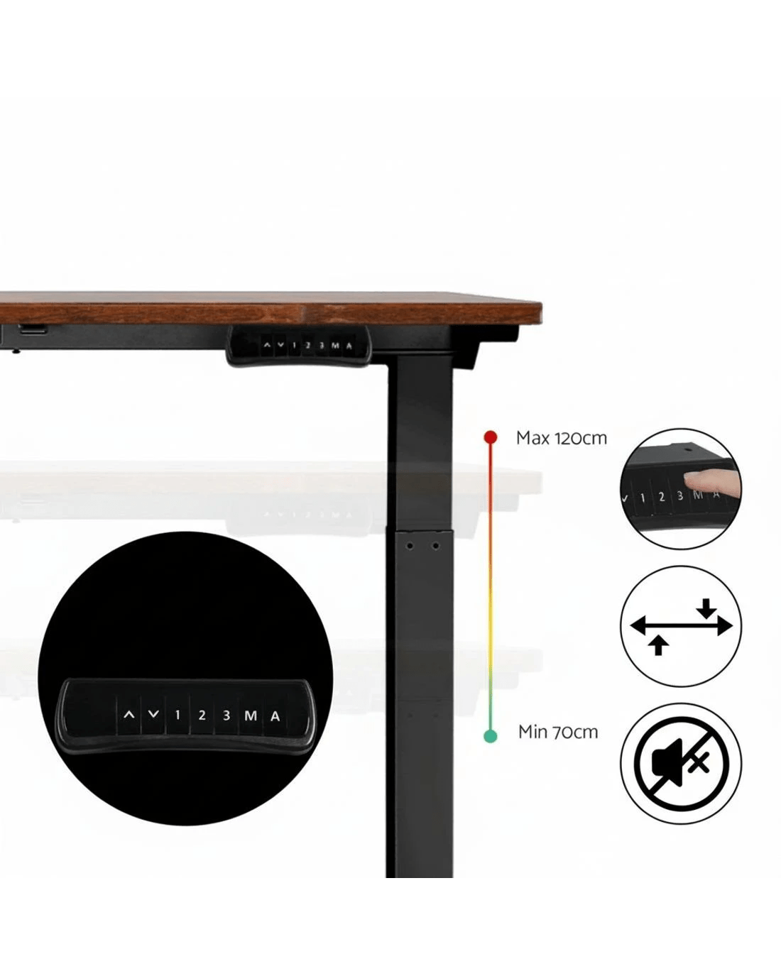 Poor posture and sedentary lifestyles contribute to several health issues. Now keep your health in good shape with the Artiss Motorised Adjustable Desk Frame! Designed to go with our Artiss Desktop, it won't disappoint you either with its quality or aesthetics. With our innovative height-adjustable desk frame, you can stand while working and stretch and engage your muscles to prevent them from weakening. Our desk frame features an easy-to-use digital control panel that enables you to easily adjust the desk to a suitable height and ensure your comfort while working. Save up to 3 pre-set heights so you can instantly get comfortable whenever you need. The smooth motors allow for ultra-quiet operation with low energy consumption. Our high-quality powder-coated desk frame makes cleaning and maintenance easy and ensures ultimate sturdiness. It also comes with adjustable rubber foot pads that offer extra stability and keep your floors safe. As for the desktop, it comes with pre-drilled holes for easy installation. It is made from eco-friendly particleboard and comes with a natural wood grain or contemporary matte finish to create a smooth surface and a beautiful aesthetic. The desktop is scratch resistant and perfect for all your working needs. Get yourself Artiss Motorised Adjustable Desk Frame and Desktop to prevent fatigue and improve productivity.