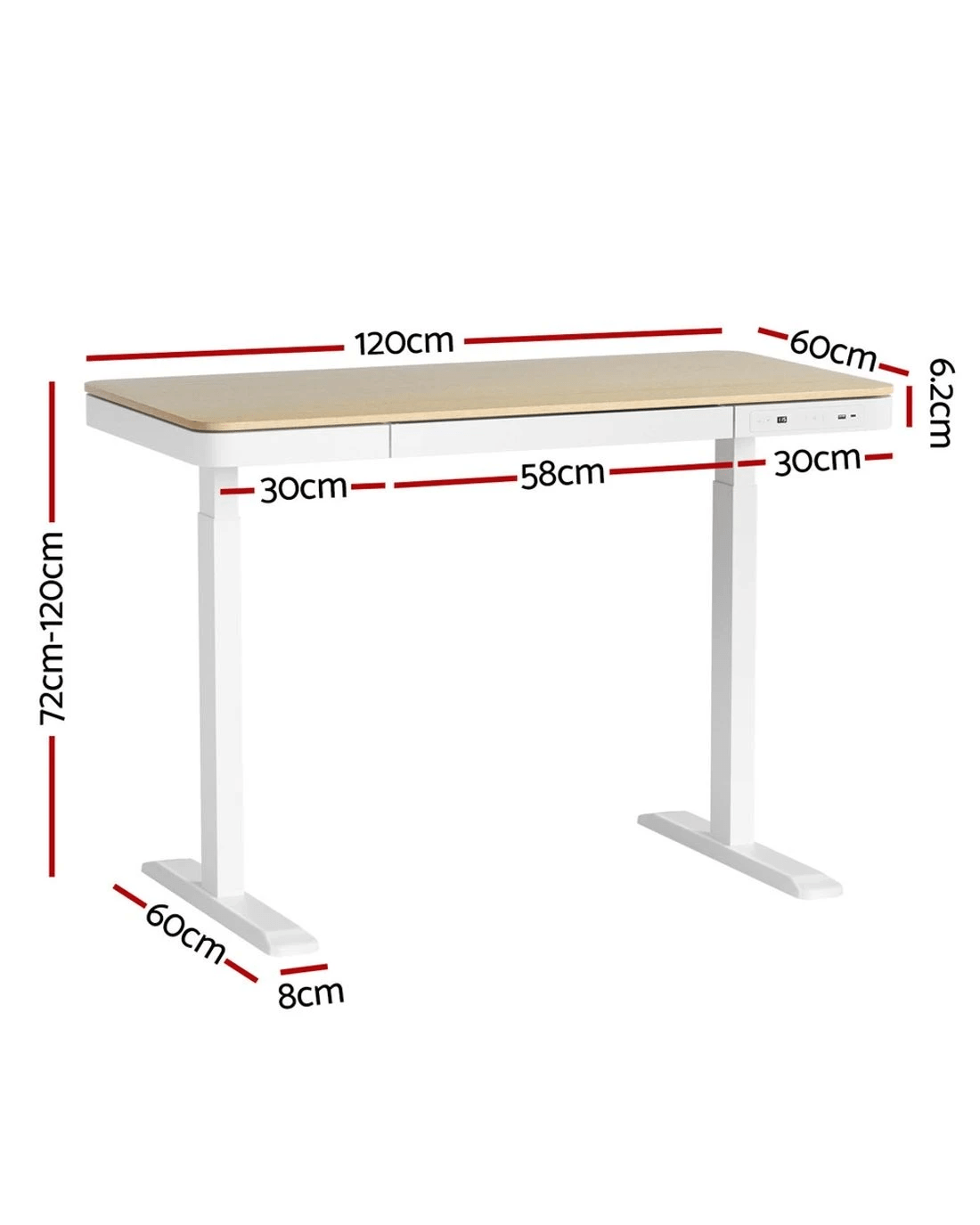 Sold by Aisle SixArtiss Standing Desk Motorised Electric Desks Drawer 120CM Oak - Brown