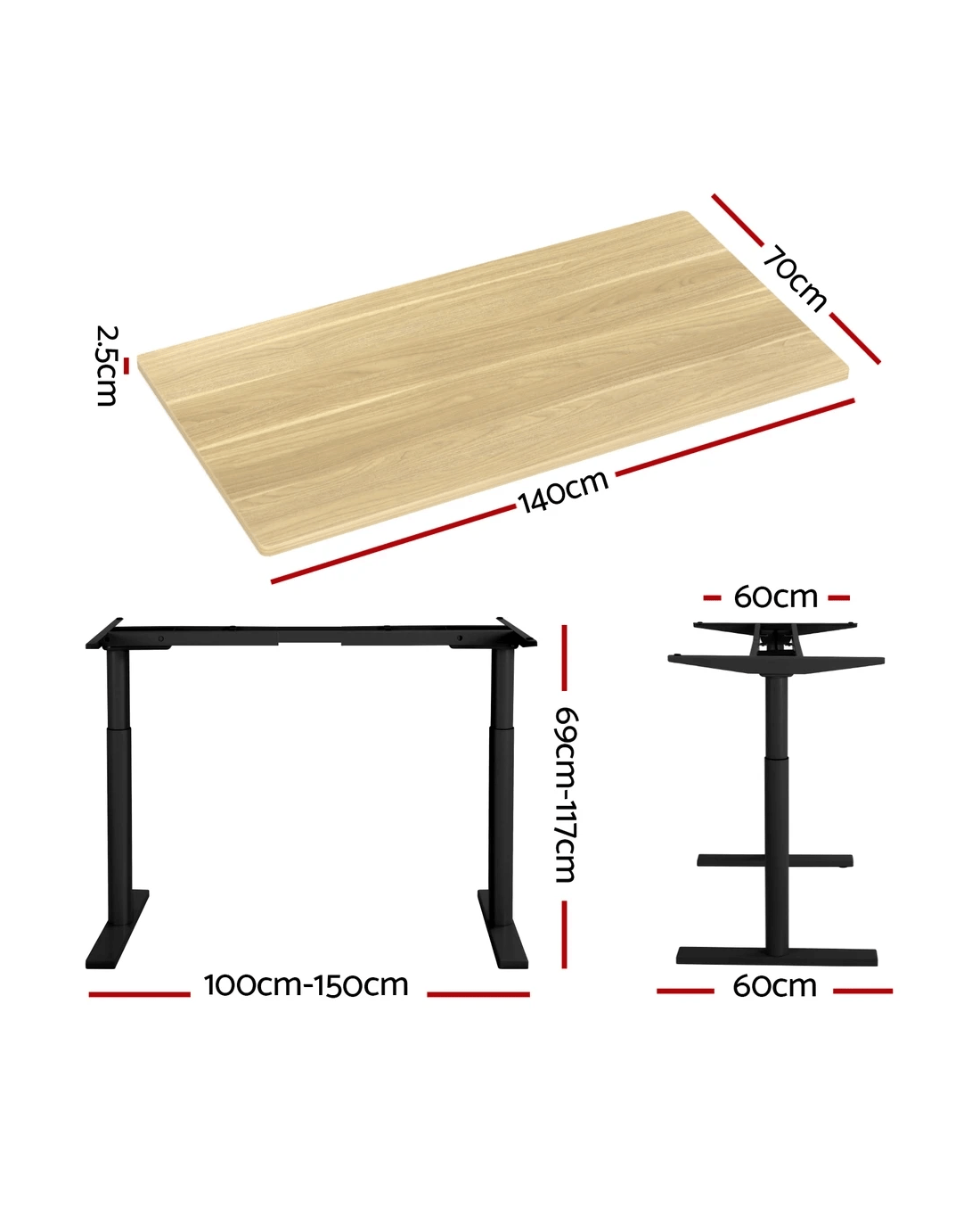Artiss Standing Desk Motorised Electric Dual Motor Oak 140CM - Brown