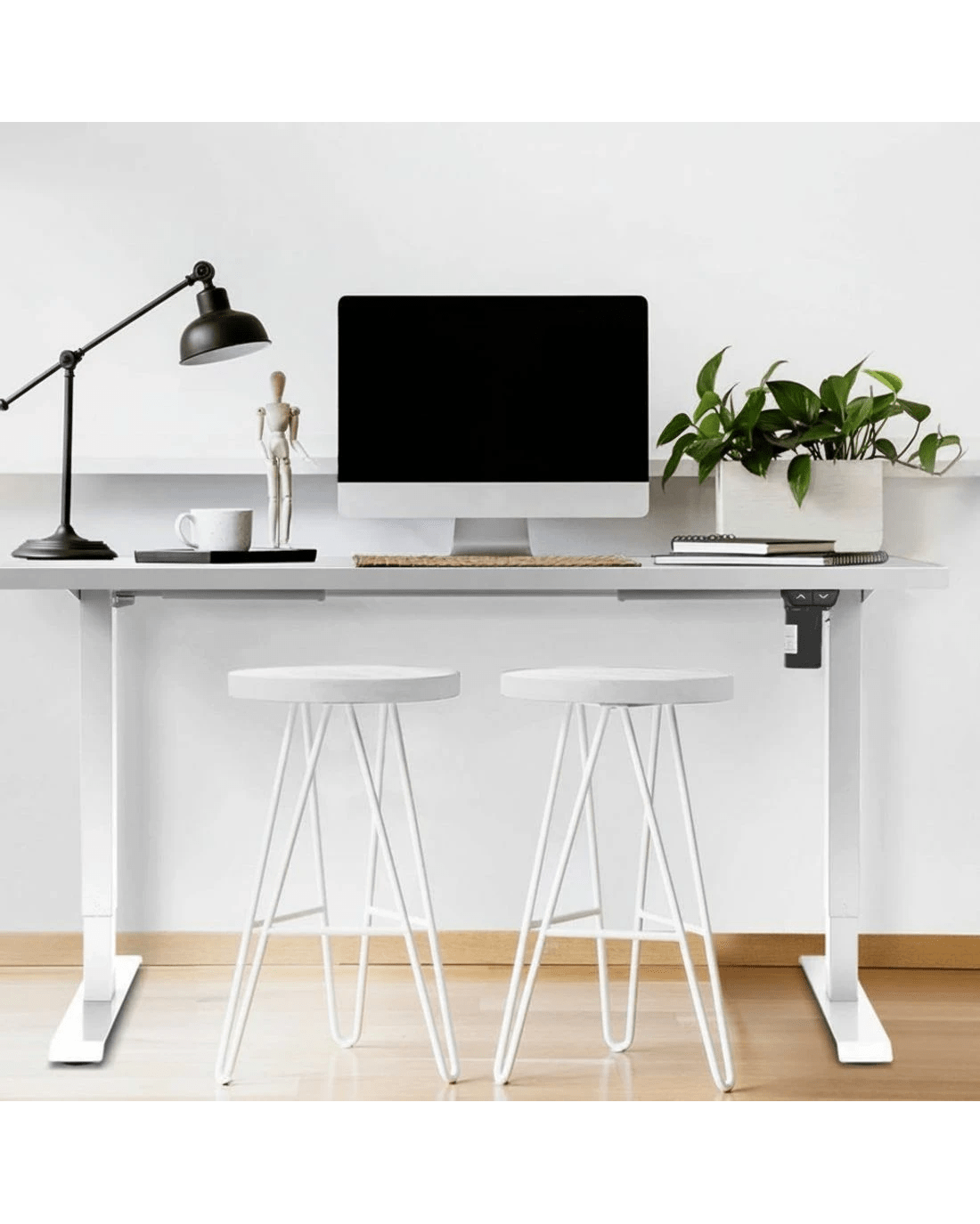 Poor posture and sedentary lifestyles contribute to several health issues. Now keep your health in good shape with the Artiss Motorised Adjustable Desk Frame! Designed to go with our Artiss Desktop, it won't disappoint you either with its quality or aesthetics. With our innovative height-adjustable desk frame, you can stand while working and stretch and engage your muscles to prevent them from weakening. Our desk frame features an easy-to-use digital control panel that enables you to easily adjust the desk to a suitable height and ensure your comfort while working. The smooth motors allow for ultra-quiet operation with low energy consumption. Our high-quality powder-coated desk frame makes cleaning and maintenance easy and ensures ultimate sturdiness. It also comes with adjustable rubber foot pads that offer extra stability and keep your floors safe. As for the desktop, it comes with pre-drilled holes for easy installation. It is made from eco-friendly particleboard and comes with a natural wood grain or contemporary matte finish to create a smooth surface and a beautiful aesthetic. The desktop is scratch resistant and perfect for all your working needs. Get yourself Artiss Motorised Adjustable Desk Frame and Desktop to prevent fatigue and improve productivity.