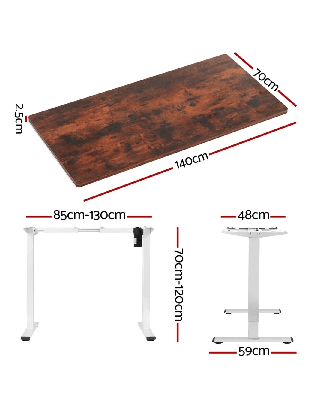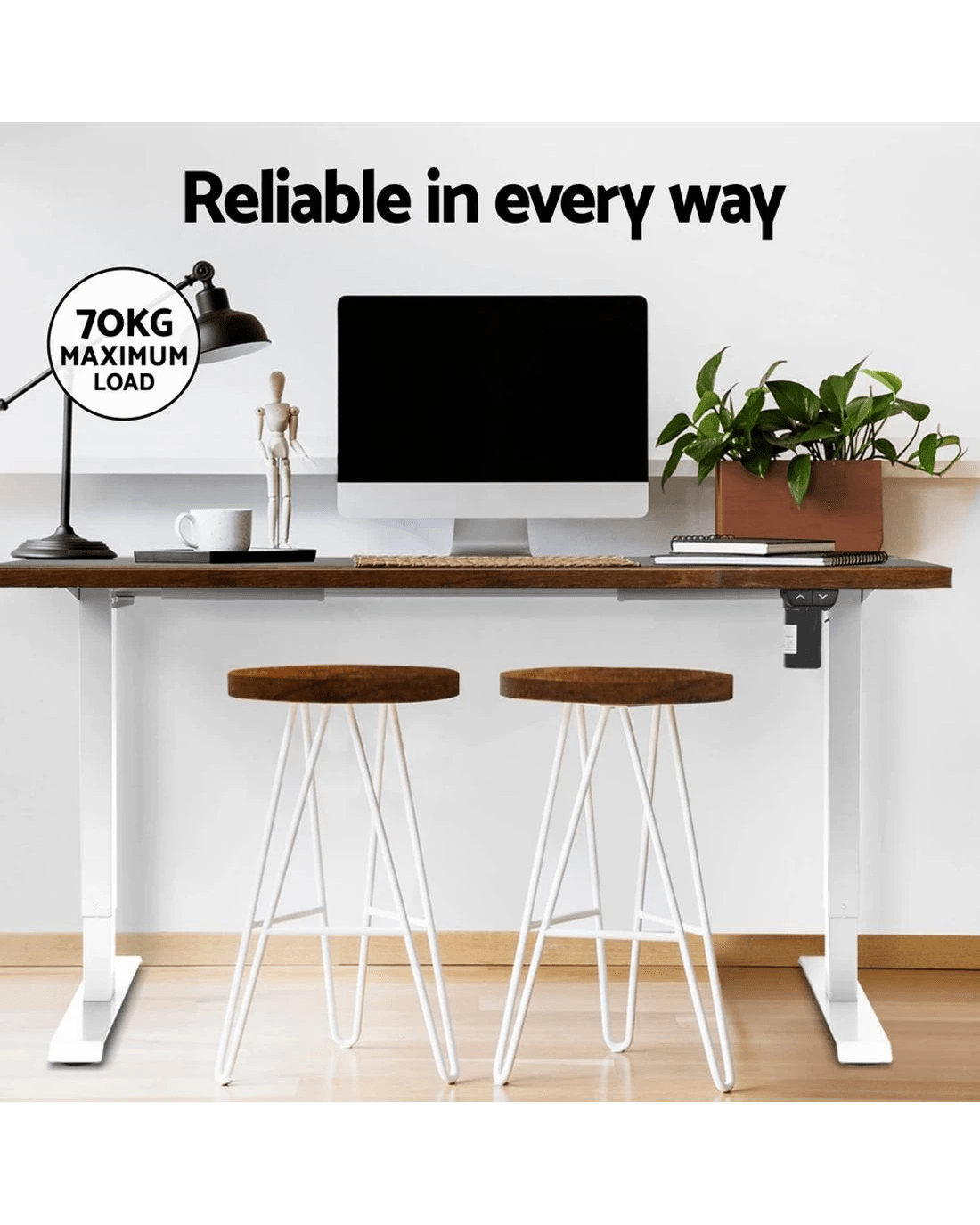 Poor posture and sedentary lifestyles contribute to several health issues. Now keep your health in good shape with the Artiss Motorised Adjustable Desk Frame! Designed to go with our Artiss Desktop, it won't disappoint you either with its quality or aesthetics. With our innovative height-adjustable desk frame, you can stand while working and stretch and engage your muscles to prevent them from weakening. Our desk frame features an easy-to-use digital control panel that enables you to easily adjust the desk to a suitable height and ensure your comfort while working. The smooth motors allow for ultra-quiet operation with low energy consumption. Our high-quality powder-coated desk frame makes cleaning and maintenance easy and ensures ultimate sturdiness. It also comes with adjustable rubber foot pads that offer extra stability and keep your floors safe. As for the desktop, it comes with pre-drilled holes for easy installation. It is made from eco-friendly particleboard and comes with a natural wood grain or contemporary matte finish to create a smooth surface and a beautiful aesthetic. The desktop is scratch resistant and perfect for all your working needs. Get yourself Artiss Motorised Adjustable Desk Frame and Desktop to prevent fatigue and improve productivity.
