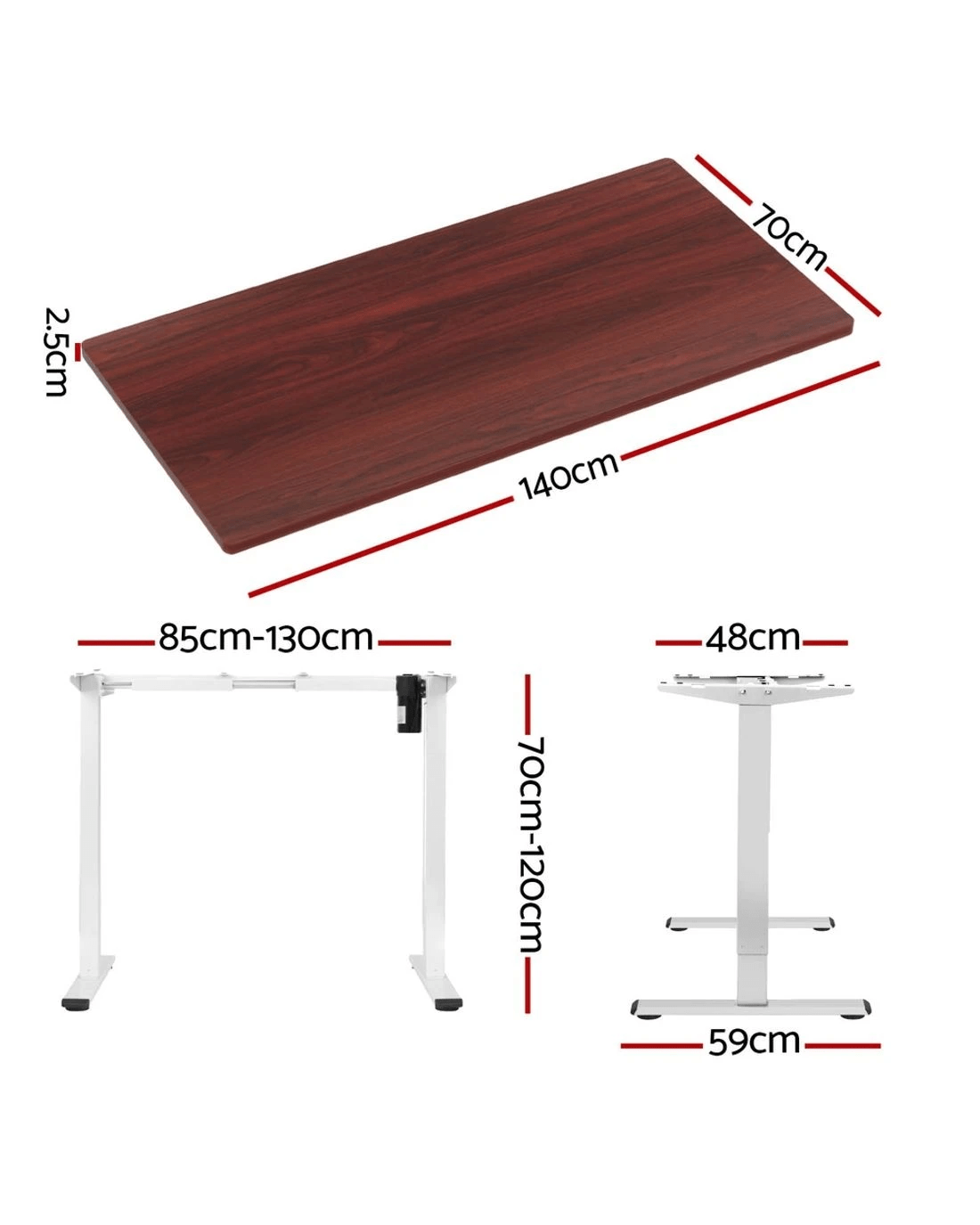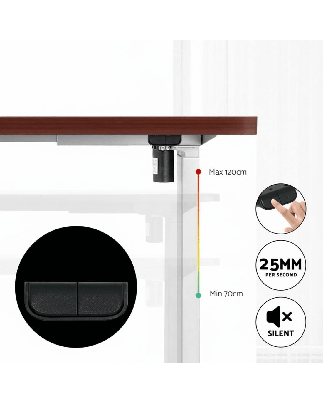Poor posture and sedentary lifestyles contribute to several health issues. Now keep your health in good shape with the Artiss Motorised Adjustable Desk Frame! Designed to go with our Artiss Desktop, it won't disappoint you either with its quality or aesthetics. With our innovative height-adjustable desk frame, you can stand while working and stretch and engage your muscles to prevent them from weakening. Our desk frame features an easy-to-use digital control panel that enables you to easily adjust the desk to a suitable height and ensure your comfort while working. The smooth motors allow for ultra-quiet operation with low energy consumption. Our high-quality powder-coated desk frame makes cleaning and maintenance easy and ensures ultimate sturdiness. It also comes with adjustable rubber foot pads that offer extra stability and keep your floors safe. As for the desktop, it comes with pre-drilled holes for easy installation. It is made from eco-friendly particleboard and comes with a natural wood grain or contemporary matte finish to create a smooth surface and a beautiful aesthetic. The desktop is scratch resistant and perfect for all your working needs. Get yourself Artiss Motorised Adjustable Desk Frame and Desktop to prevent fatigue and improve productivity.