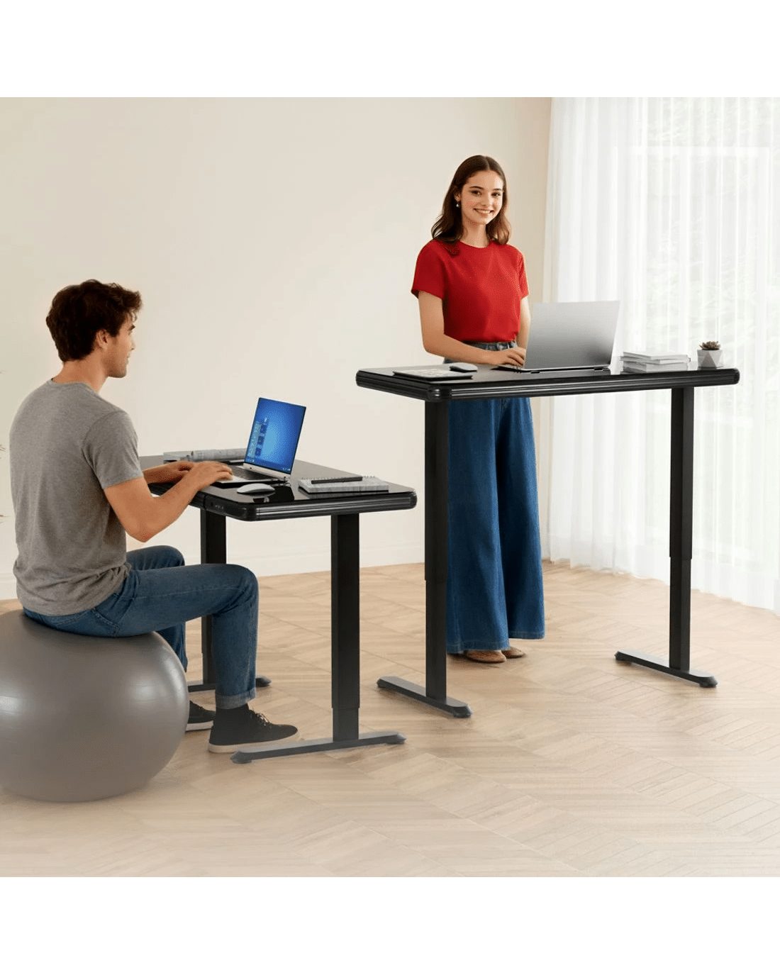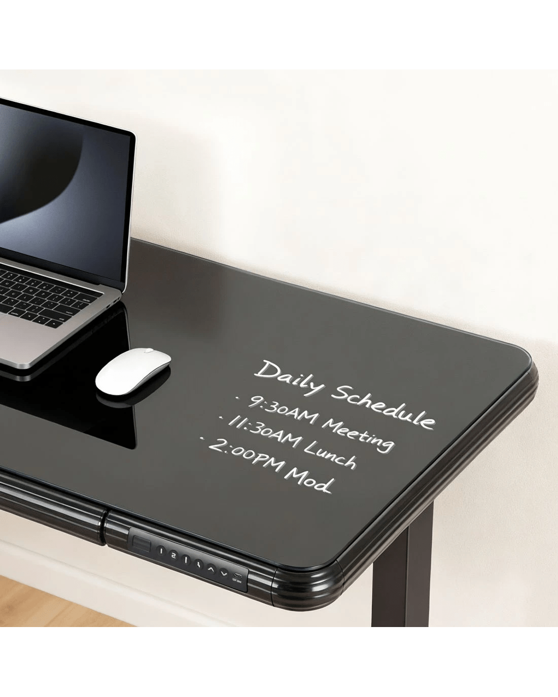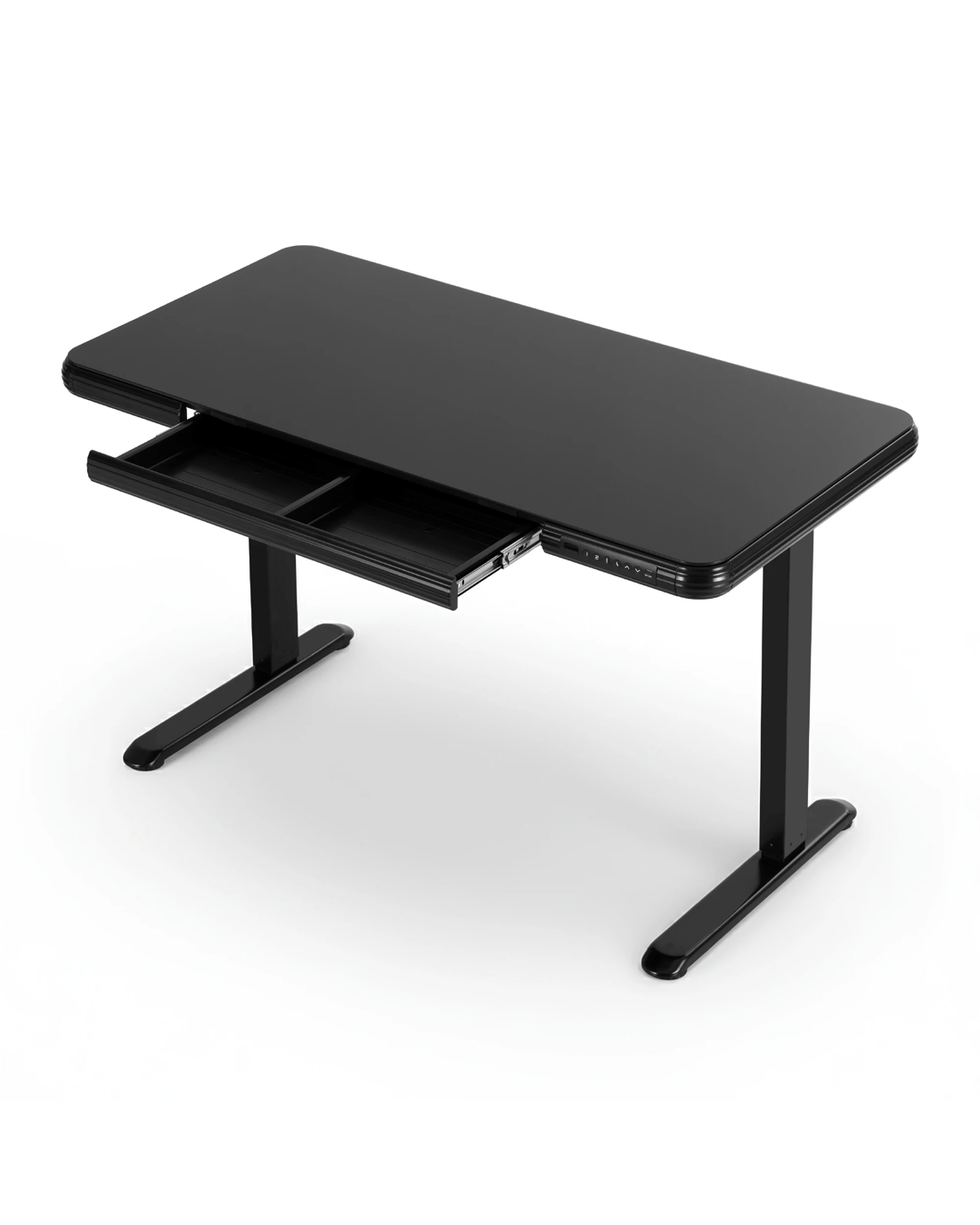 Upgrade your workspace with our premium electric standing desk, designed for modern Australian homes and offices. With effortless height adjustment at the touch of a button, this desk allows you to smoothly transition between sitting and standing, helping you work more comfortably and maintain better posture throughout the day. The memory presets let you instantly recall your preferred heights, making it perfect for shared or multi-user environments. Crafted with a sleek tempered glass top, it not only adds a contemporary touch but also offers ample space for your computer, accessories, and other essentials. The built-in drawer keeps stationery organised, while integrated charging ports help you power devices conveniently. Supported by a sturdy T-shaped base, the desk remains stable and secure even at its highest setting. Ideal for study rooms, offices or remote work, this standing desk combines functionality, elegance and ergonomic support—so you can work smarter and feel great.