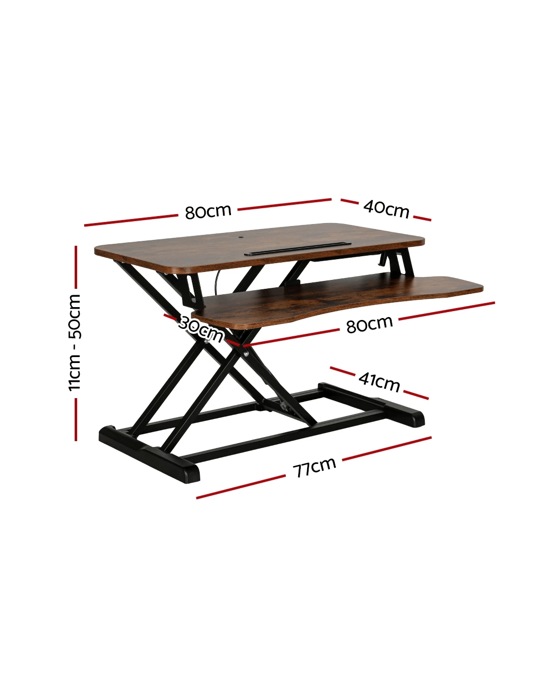 Artiss Standing Desk Riser Height Adjustable Rustic 80CM - Brown