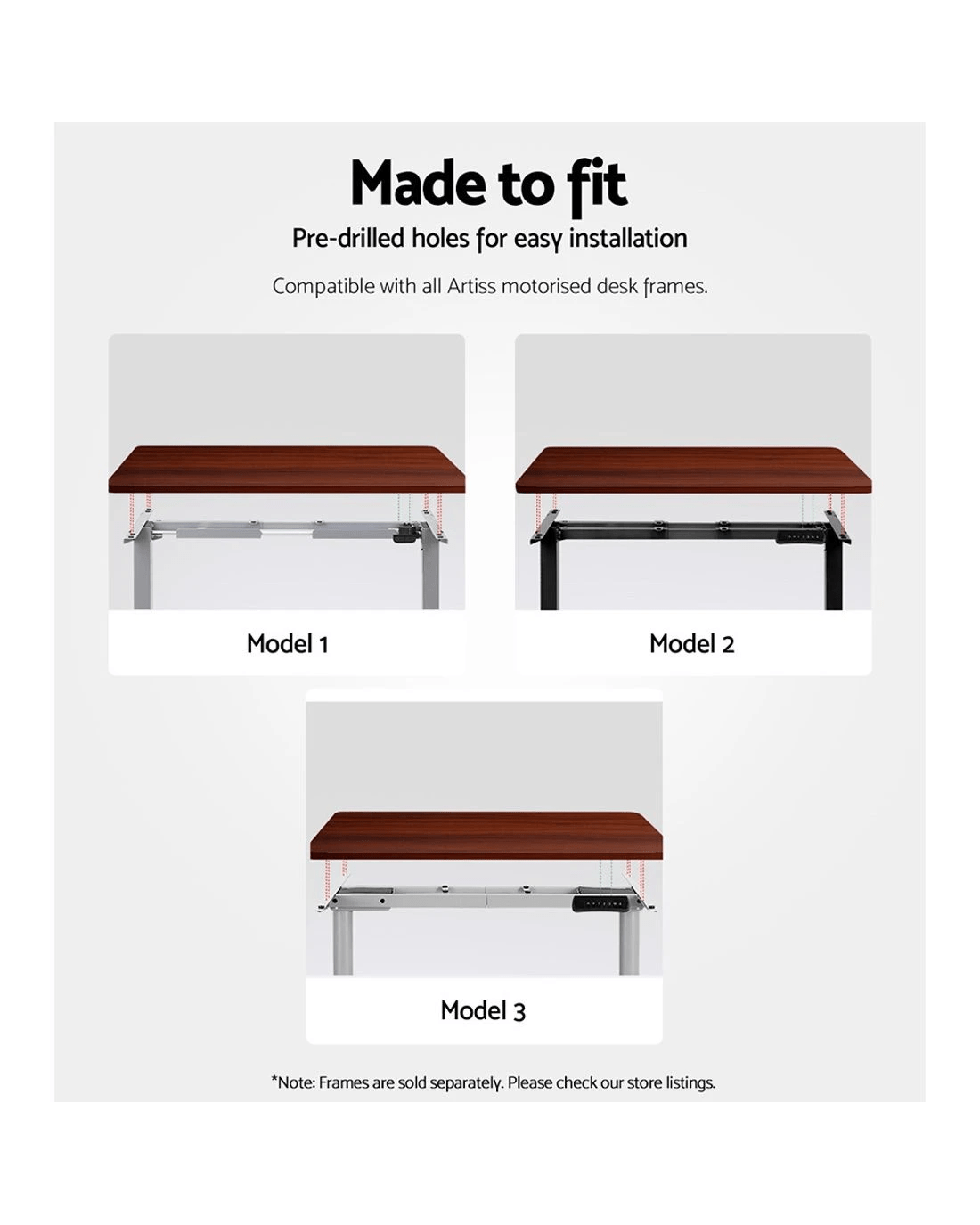 Build the workspace you always wanted with an Artiss Desk Top. Built for Artiss Motorised Desk Frames, the desk top features pre-drilled holes for quick and easy assembly. It is made from eco-friendly particleboard and comes with a natural wood grain or contemporary matte finish to create a smooth surface and a beautiful aesthetic. The 2.5cm desktop is sturdy, anti-scratch and ready for robust use, with smooth rounded edges to avoid bumps and scrapes. Pair with the Artiss Motorised Desk Frame to create the perfect sit and stand desk for your home office. Comes in two sizes: 140cm x 70cm and 120cm x 60cm. Purchase your very own Artiss Desk Top and get your ideal home office dreams started today.