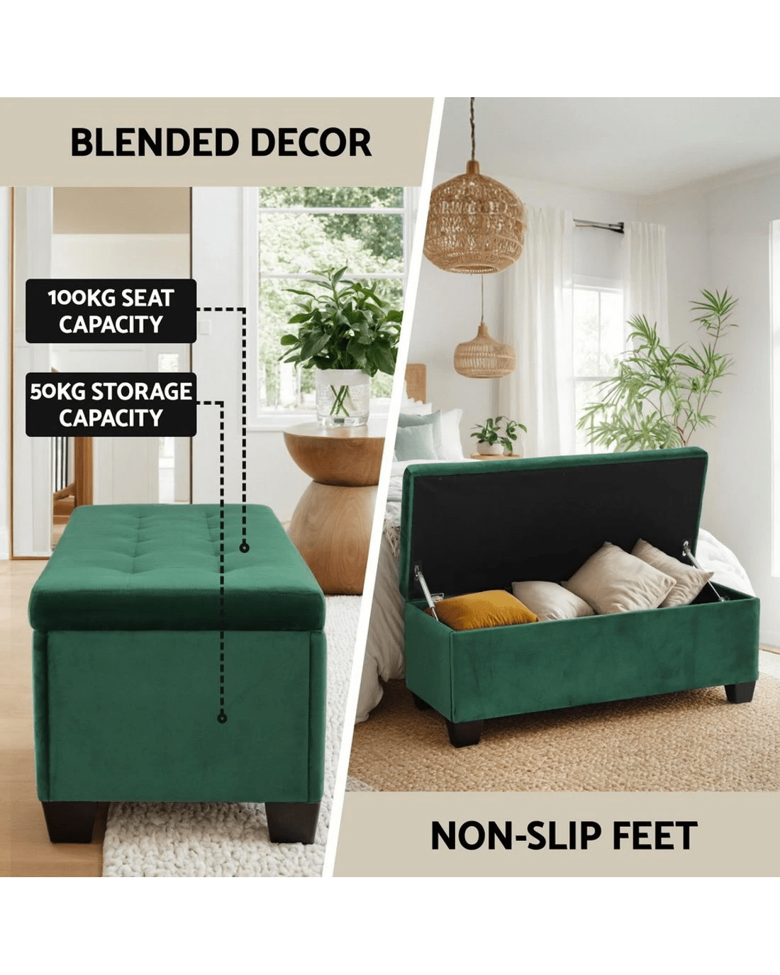 Sold by Aisle SixArtiss Storage Ottoman 97cm Blanket Box Velvet Green - Green