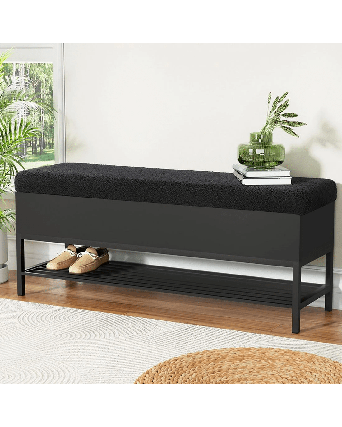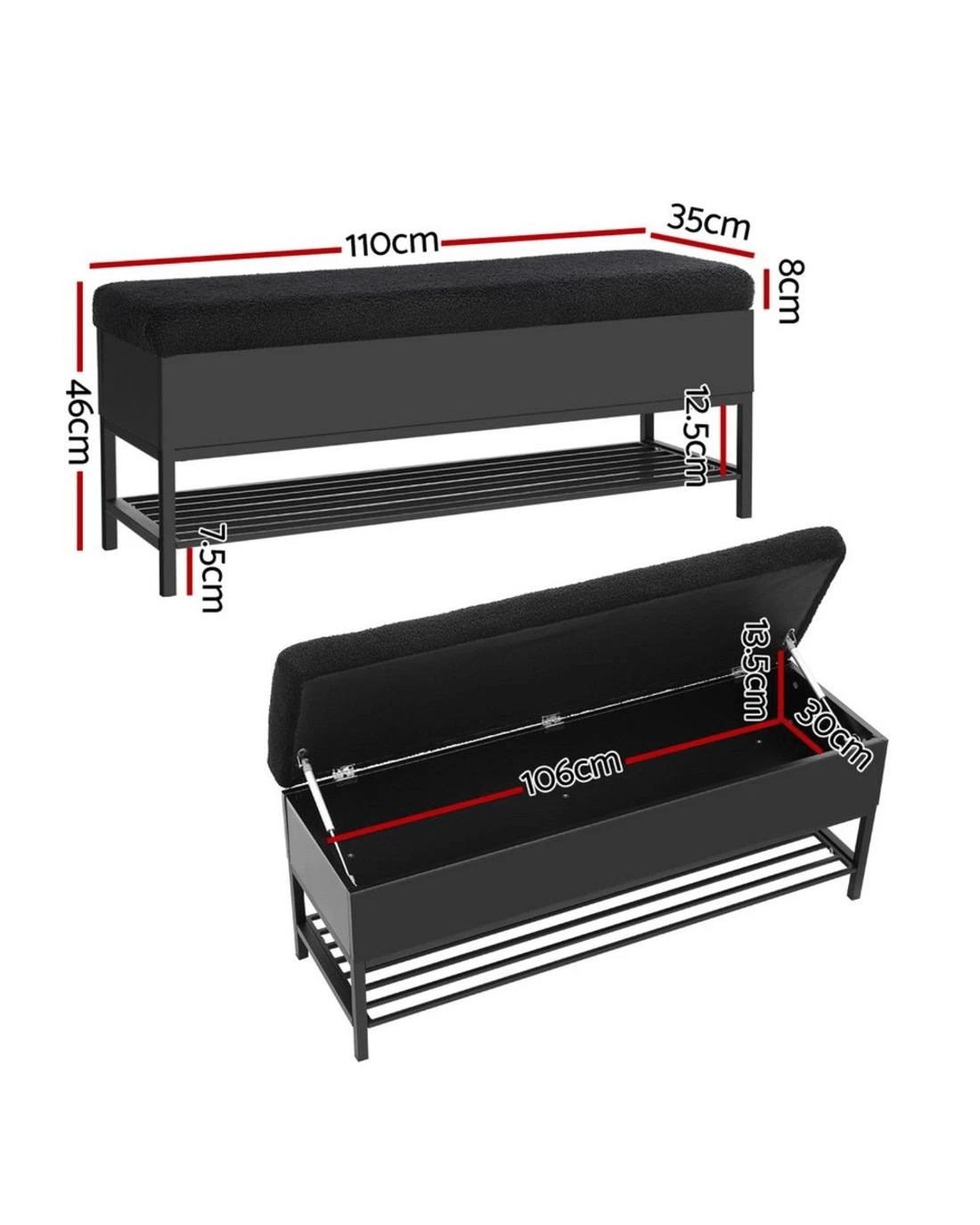 Sold by Aisle SixArtiss Storage Ottoman Blanket Box 110cm Boucle Shelf - Black