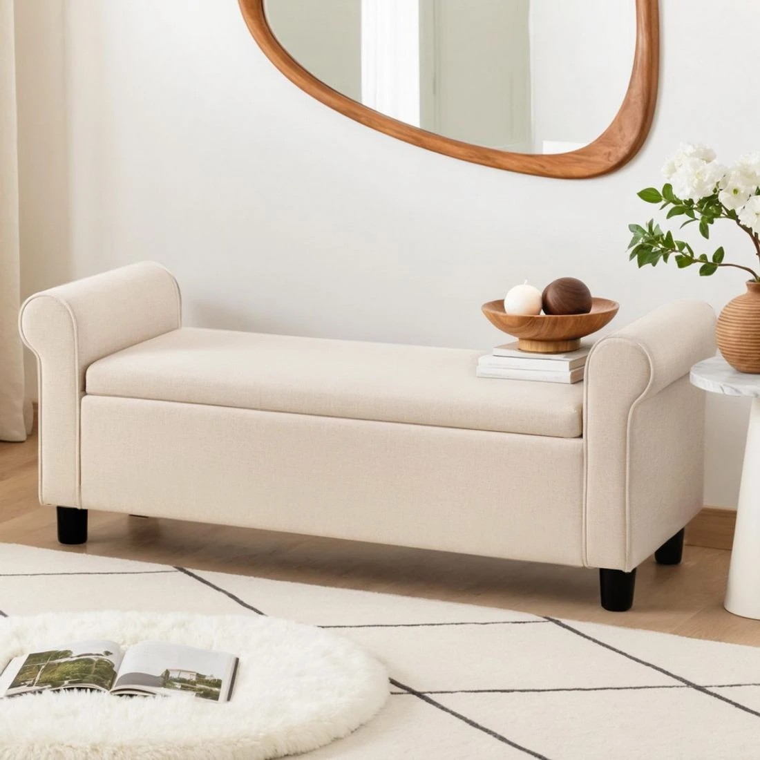 Artiss Storage Ottoman Blanket Box 125cm Arm Linen Taupe - Grey