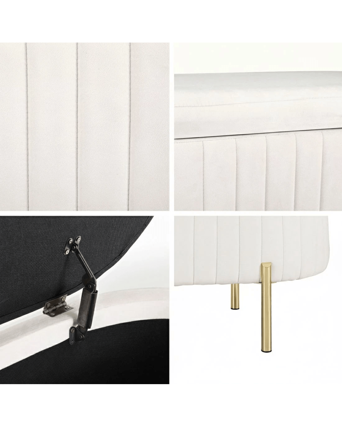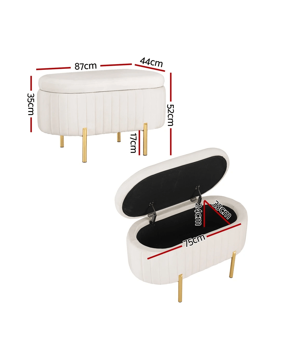 Unclutter your home in style with this luxurious velvet storage ottoman. The plush, soft velvet fabric adds a touch of elegance to any room, while the sturdy plywood frame ensures long-lasting durability. High-resilience foam padding provides extra comfort, while the generous storage space underneath keeps blankets, throws, or other belongings neatly tucked away. Metal hinges and legs offer a sleek and polished look, and the easy assembly means you'll be enjoying your new Artiss Storage Ottoman in no time.