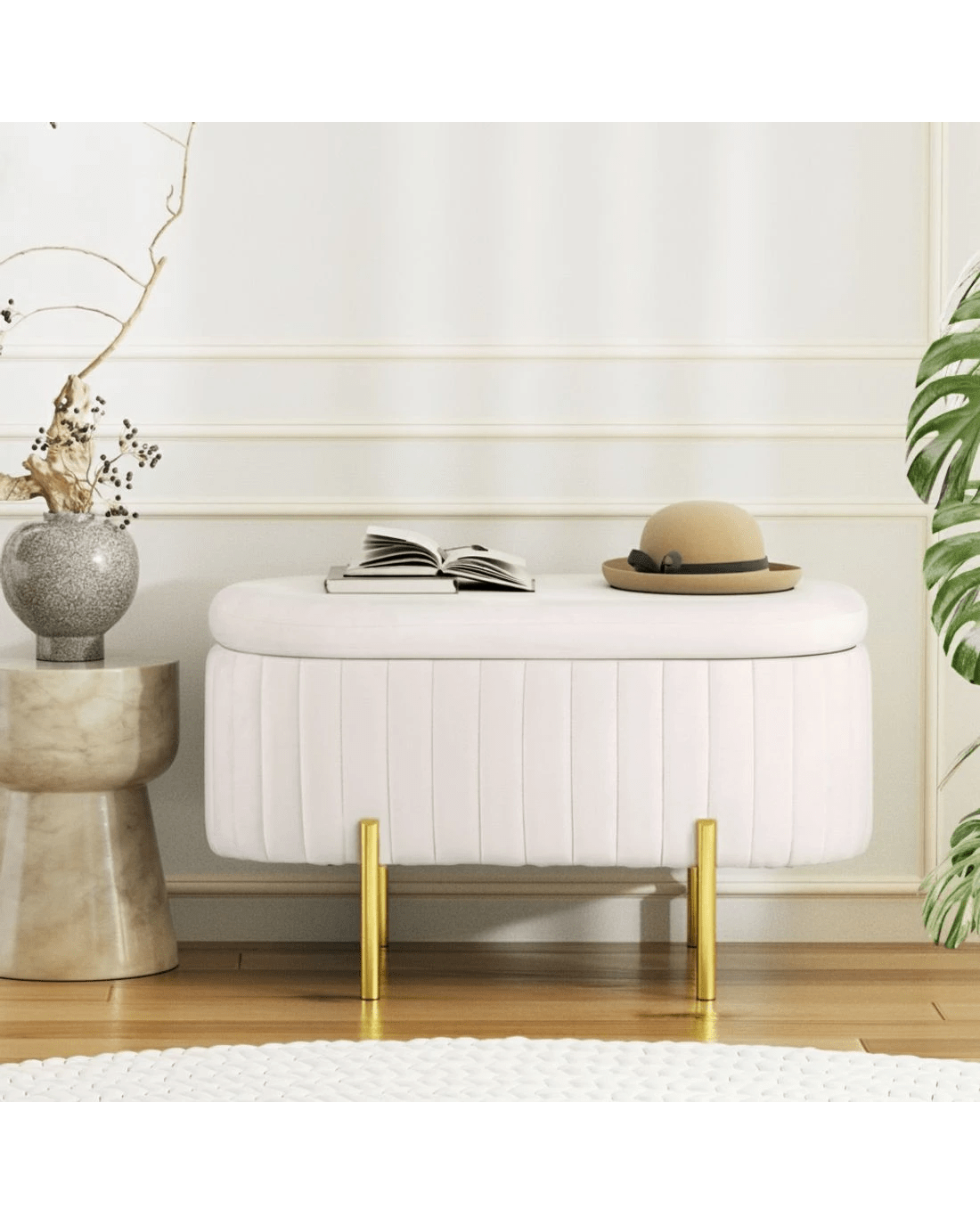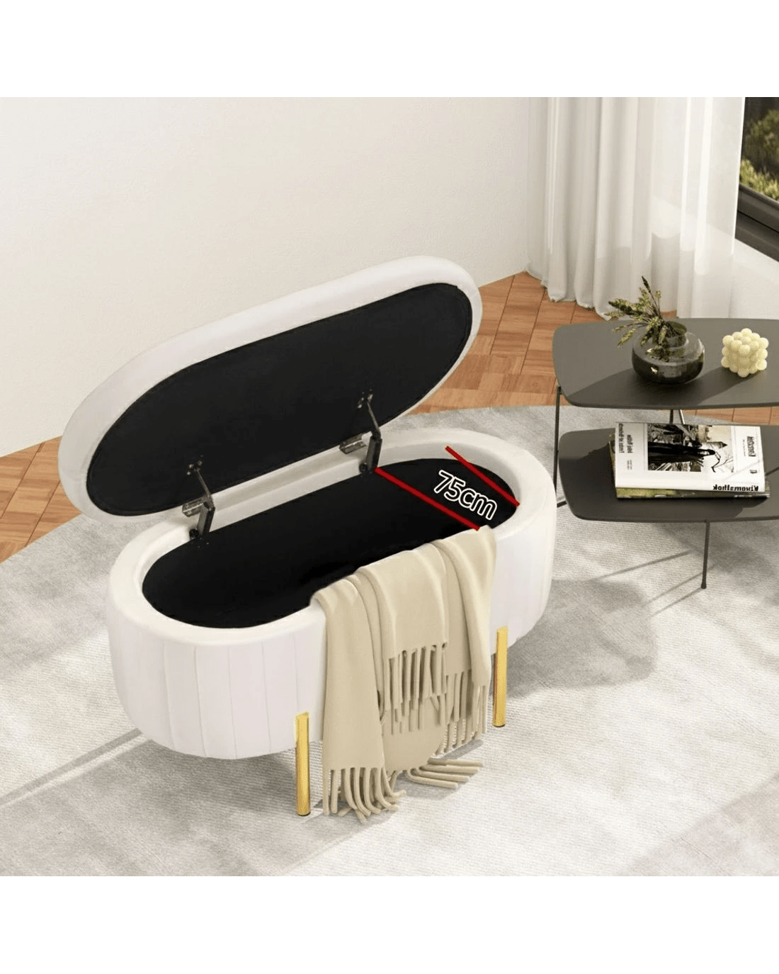 Sold by Aisle SixArtiss Storage Ottoman Blanket Box 87cm Velvet Oval - White