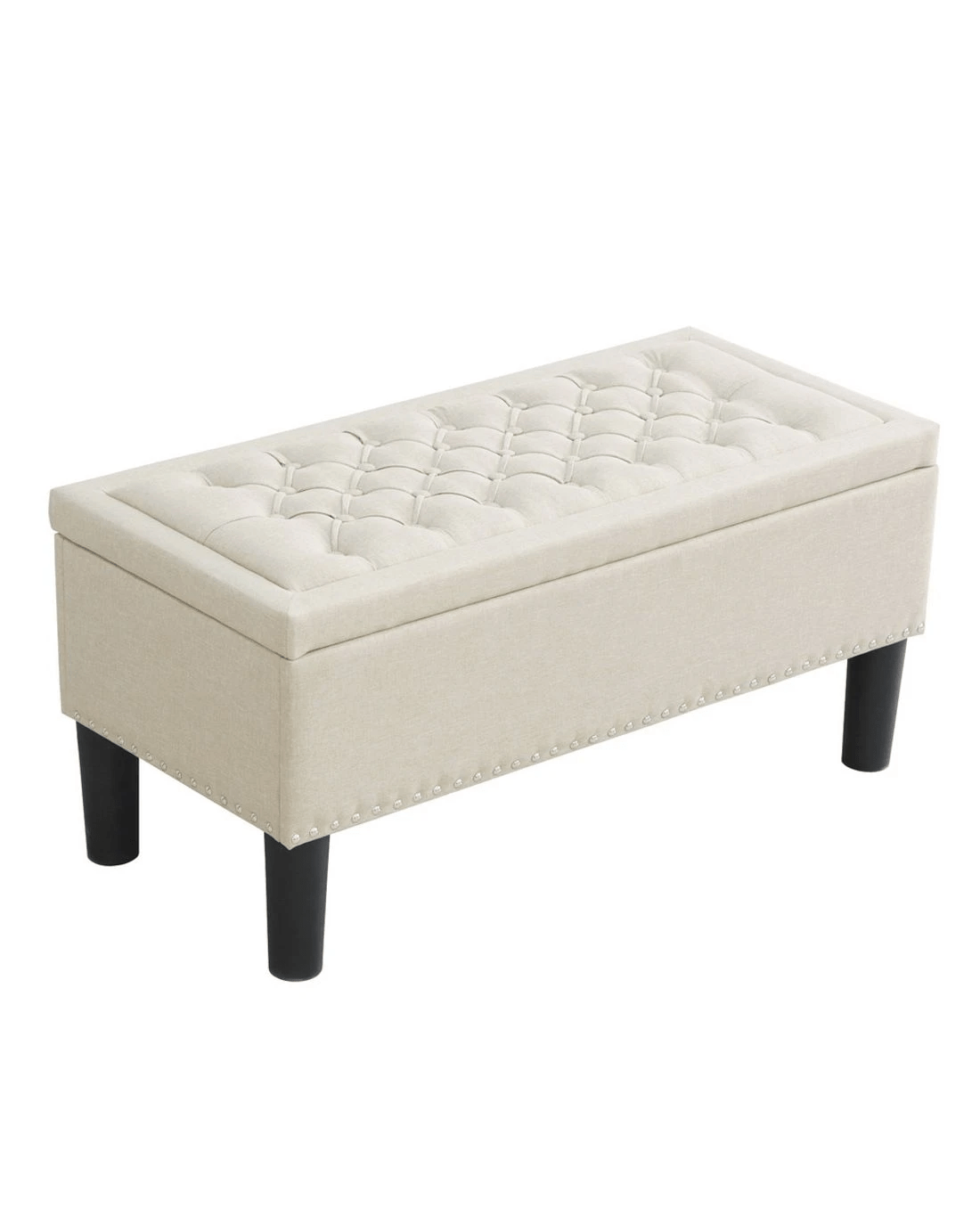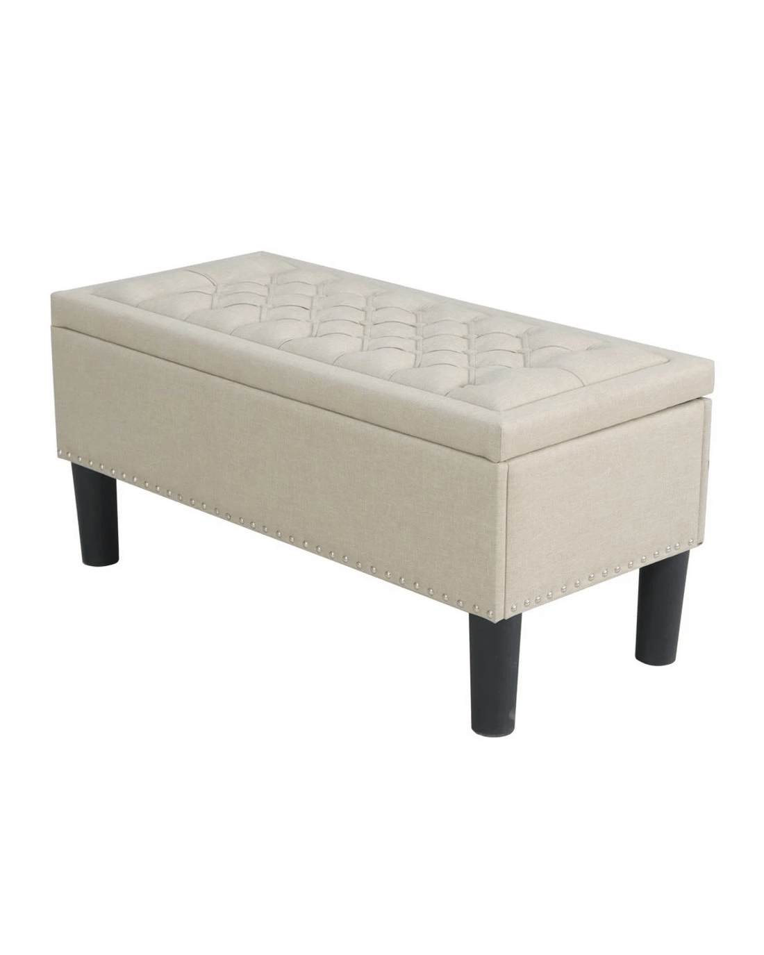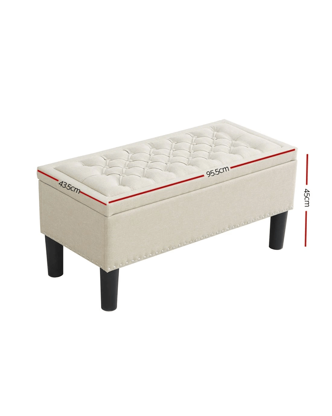 Sold by Aisle SixArtiss Storage Ottoman Blanket Box 96cm Linen Taupe - Beige