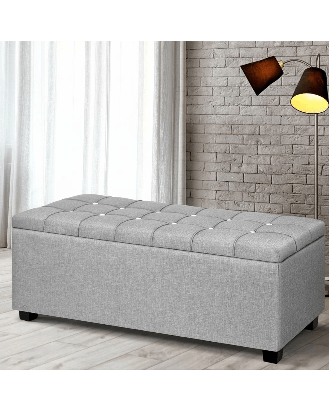 Sold by Aisle SixArtiss Storage Ottoman Blanket Box 97cm Button Linen - Grey