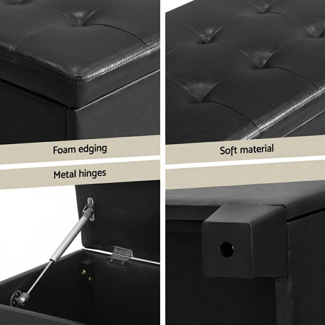 Artiss Storage Ottoman Blanket Box 97cm Leather - Black