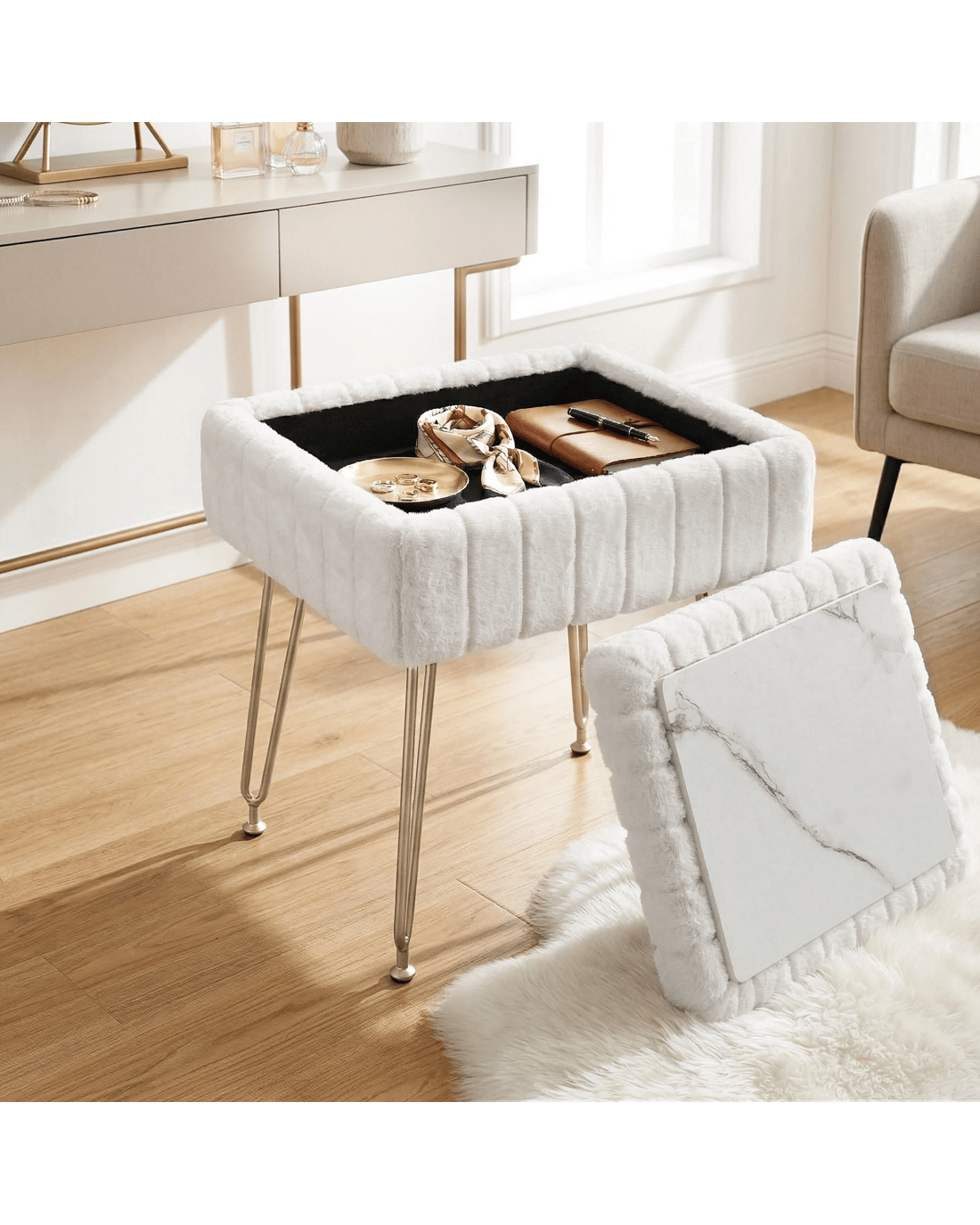 Sold by Aisle SixArtiss Storage Ottoman Vanity Foot Stool - White