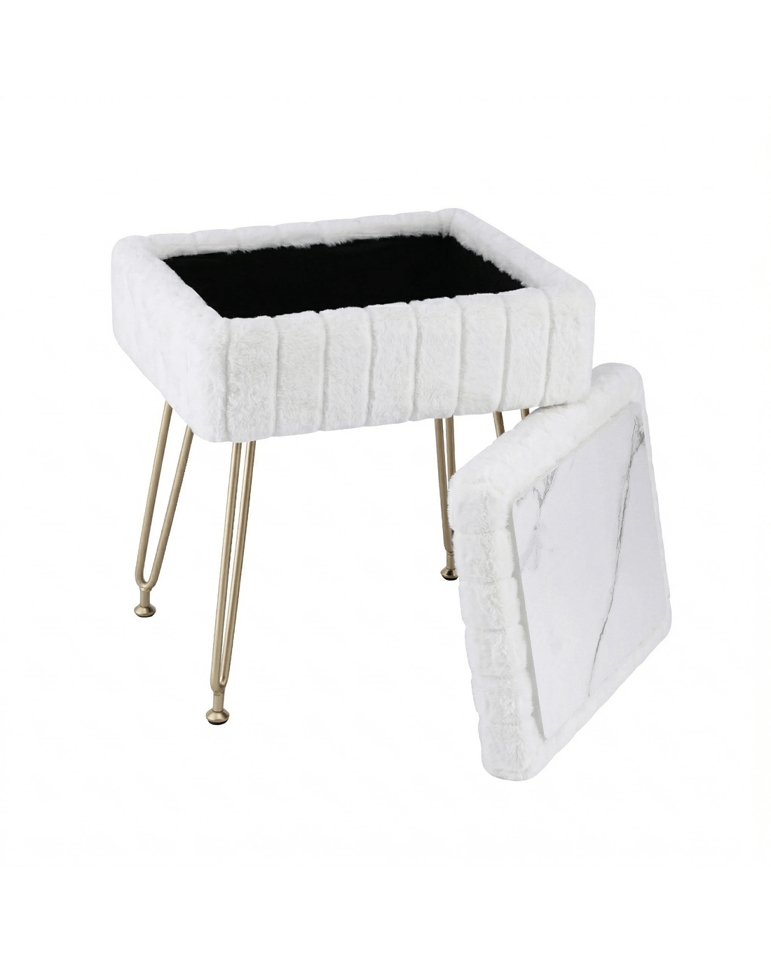 Rectangle faux fur footstool
