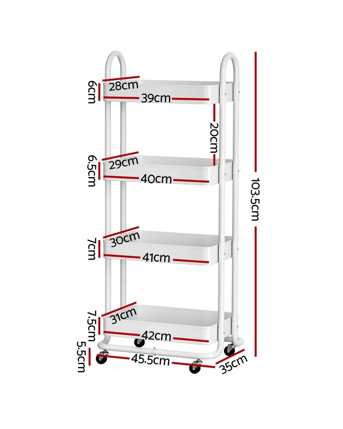 Artiss Storage Trolley Kitchen Cart 4 Tiers - White