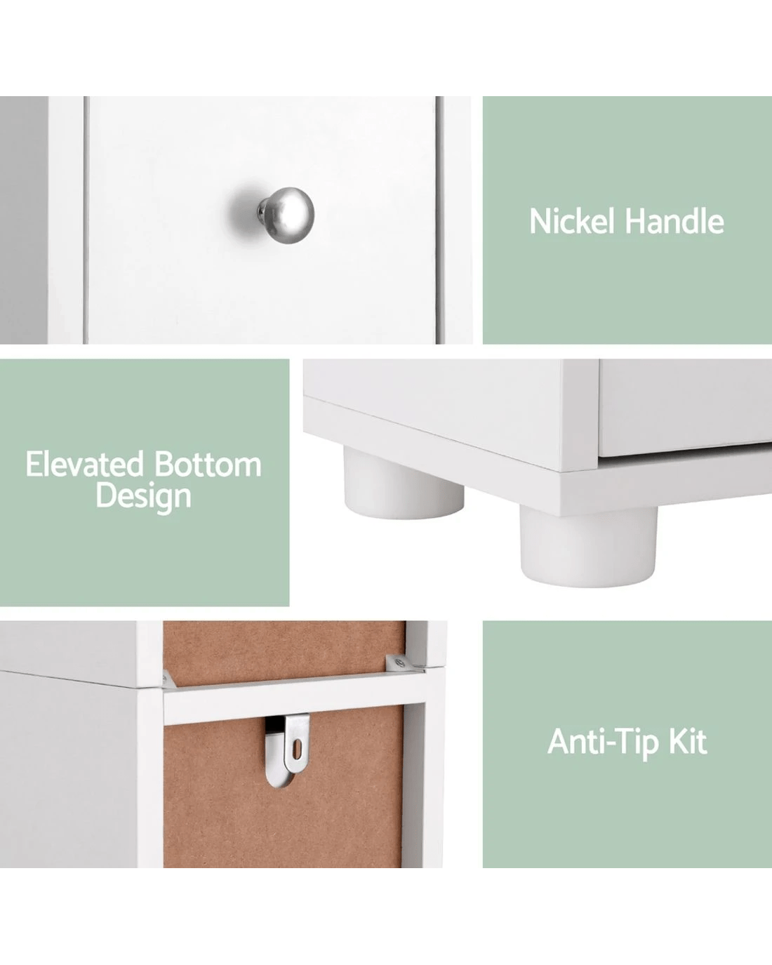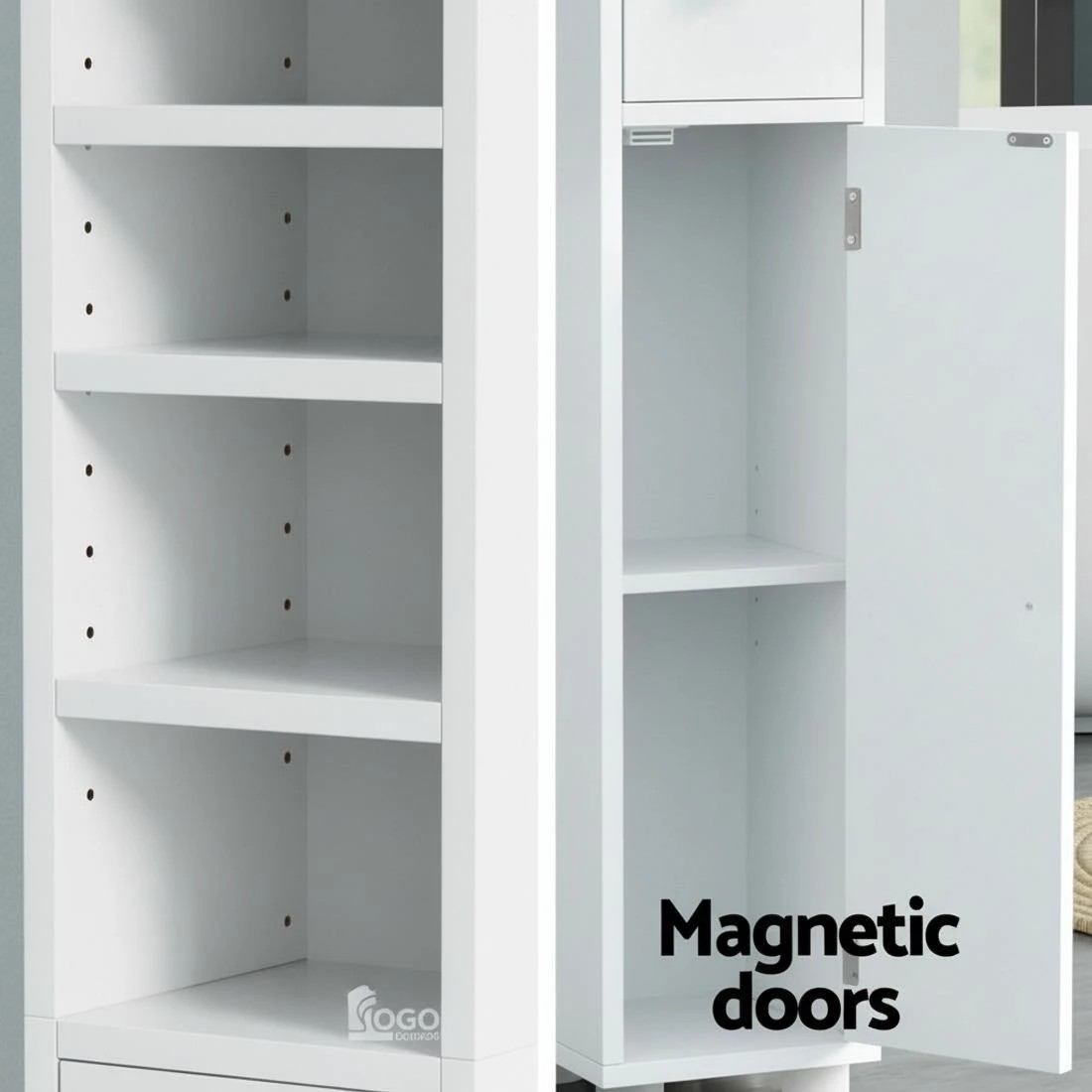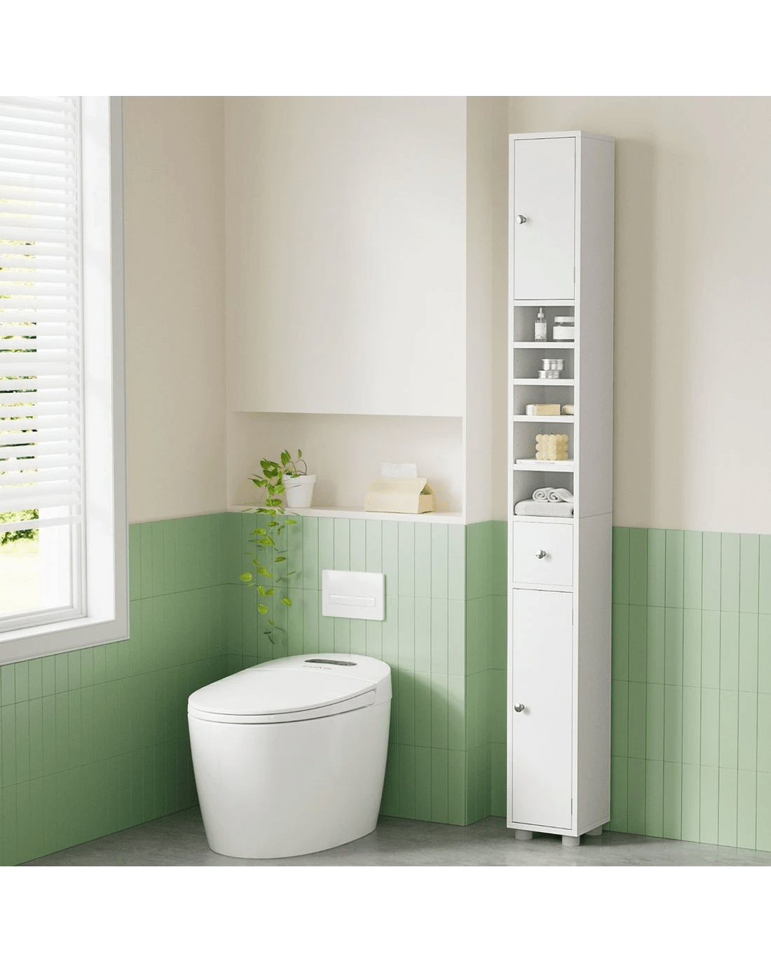 Artiss Tall Bathroom Storage Cabinet 180cm Slim Linen Tower Adjustable Shelves Durable Space Saving Organizer - white
