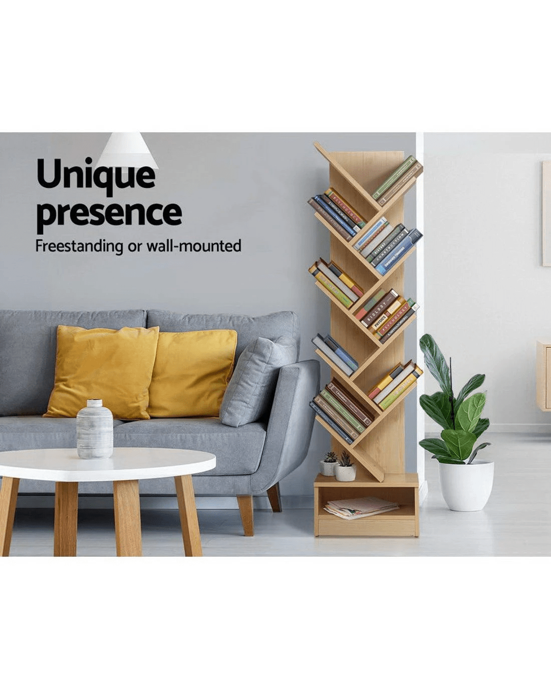 Inspired by nature. Creative by design. Our Artiss Tree Bookshelf is anything but the norm. Versatile and functional, the 9-tier bookshelf has plenty of storage space for your books, CDs, DVDs and anything worth displaying your passion. Its distinctive tree-shaped profile is full of charisma and elegance that will make an exceptional conversation piece in any room. Just like a tree, the roots of the ensemble are represented by a spacious bottom shelf with sturdy base. Not least, everything is made to last with high-quality finishing and meticulous craftsmanship. Make a statement. A truly bold and amazing statement with our tree bookshelf.