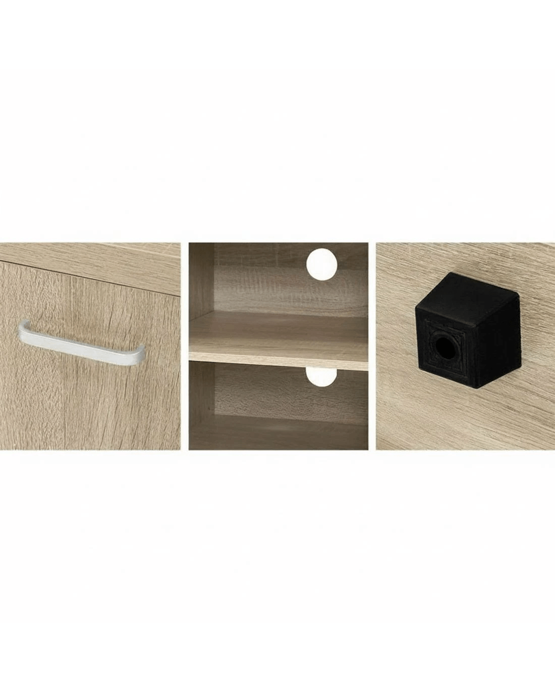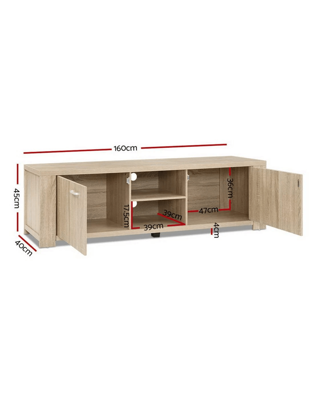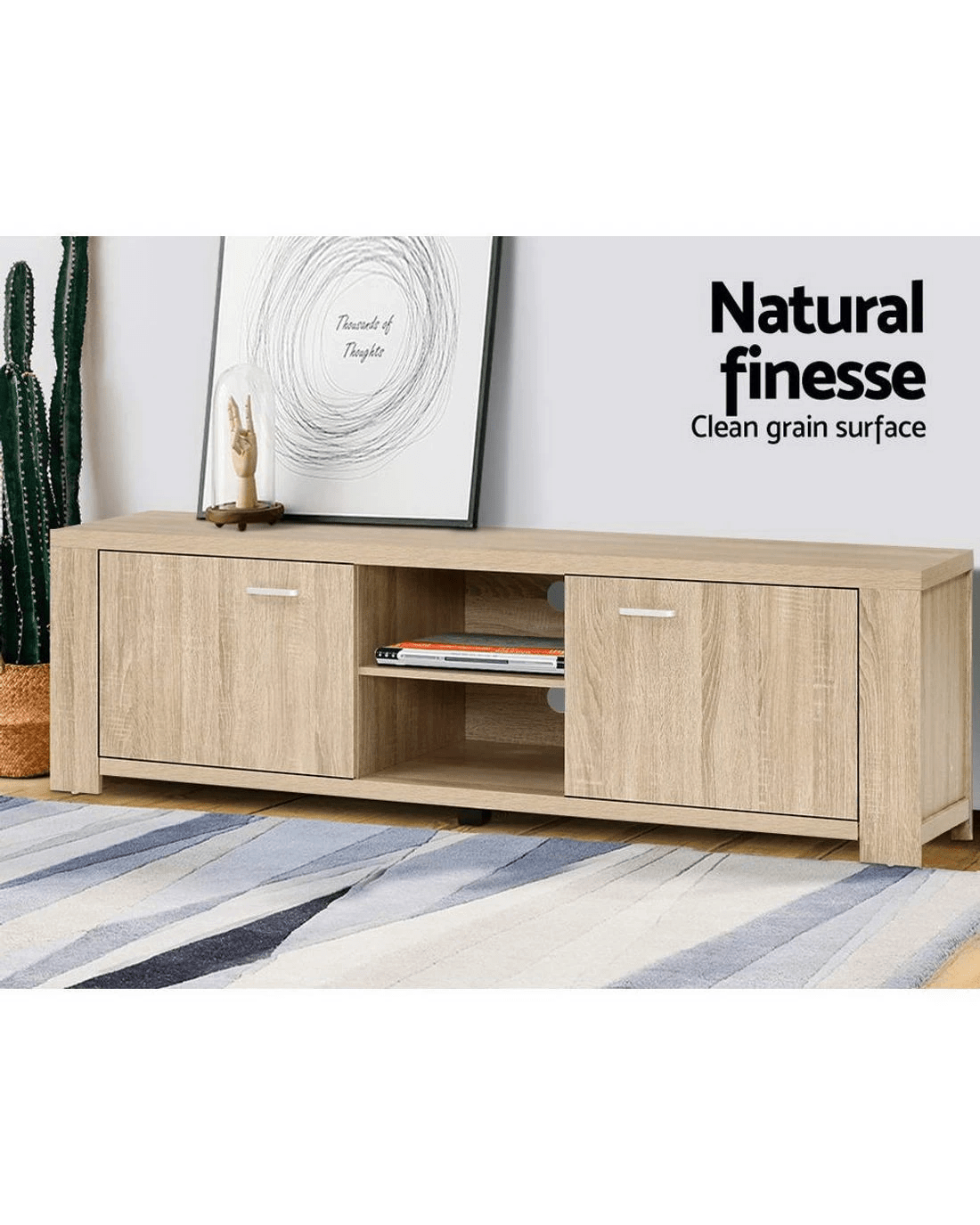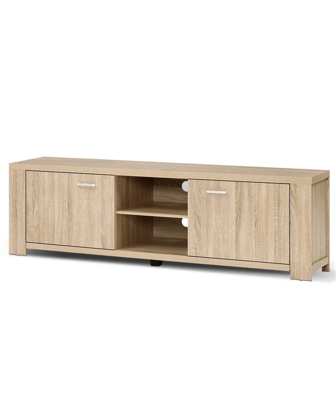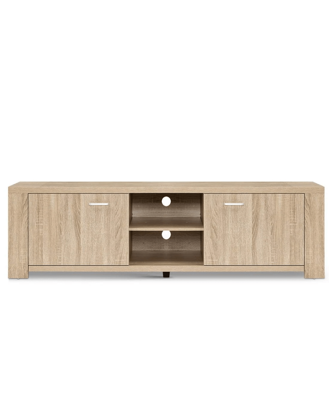 Your treasured home entertainment system deserves the best cabinet for it. And that is why our Artiss Maxi Entertainment Unit is the ideal choice for you. Incorporating a contemporary design and presented with durable and strong 30mm thick honeycomb board and 15mm thick particle board, our entertainment unit displays great craftsmanship with equally fine hardware to ensure trouble-free use every time. The natural woodgrain finish is beautiful and smooth to the touch, making the unit not only good-looking but easy to clean and maintain. And it offers ample storage space with two open shelves and two deep cabinets with magnetic door catches for all your entertainment essentials. Better still, the ensemble features smooth handles for a sleek appearance and pre-drilled holes to keep all your cables tidy. The simple and linear design means that the unit will suit any decoration and be the perfect addition to your modern living room. And best of all, you can also match with other products from the Maxi series for the complete simple-natural look.