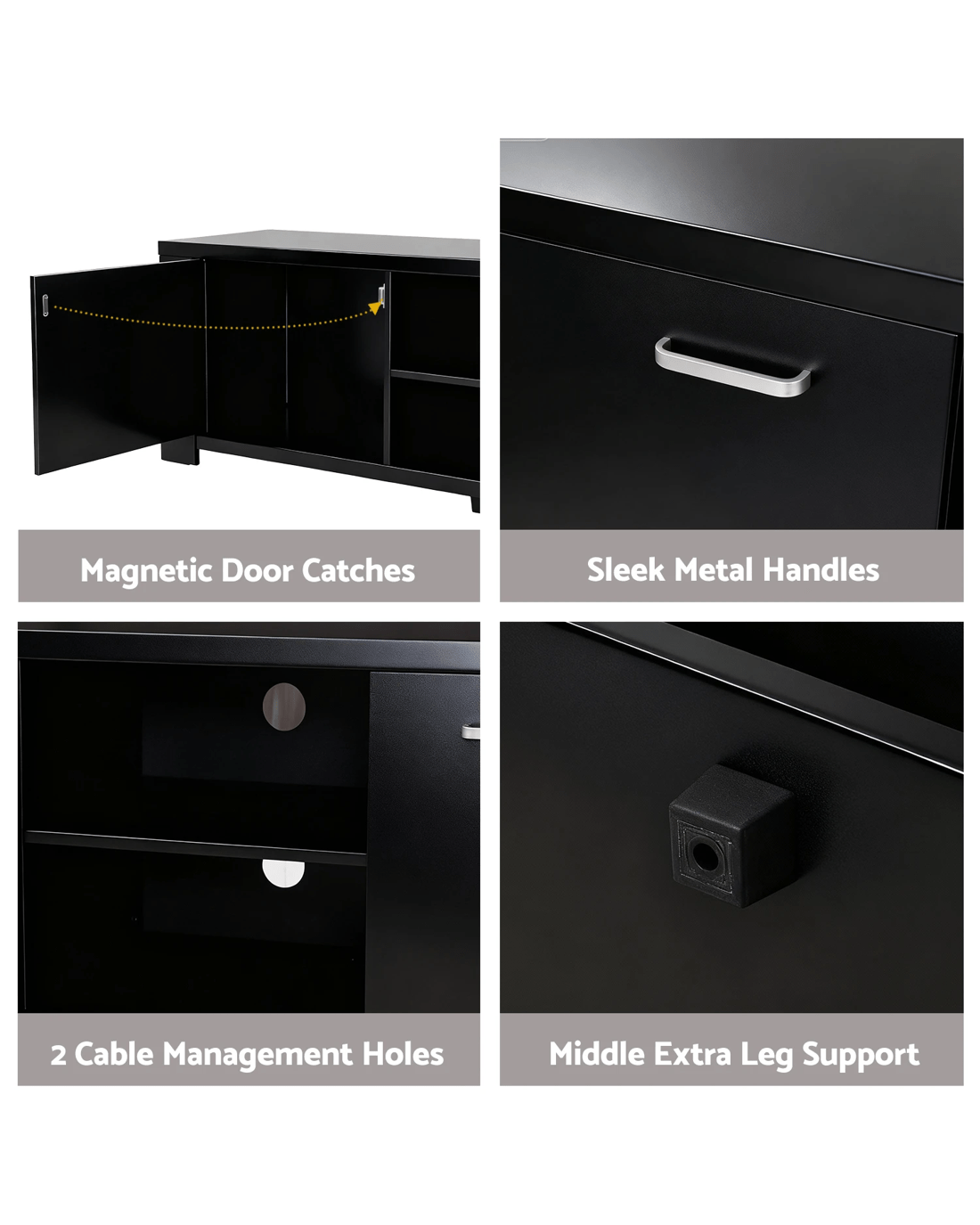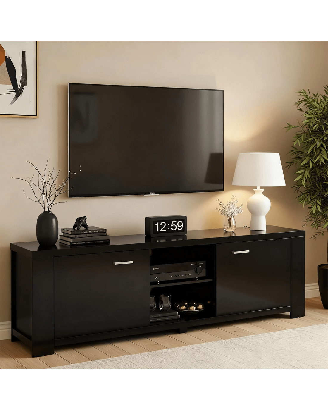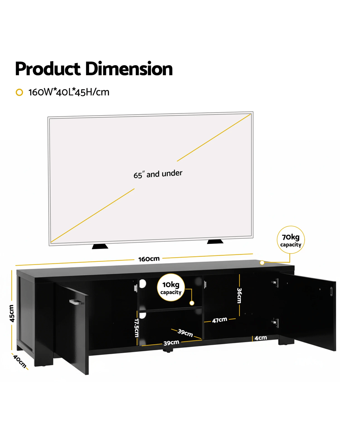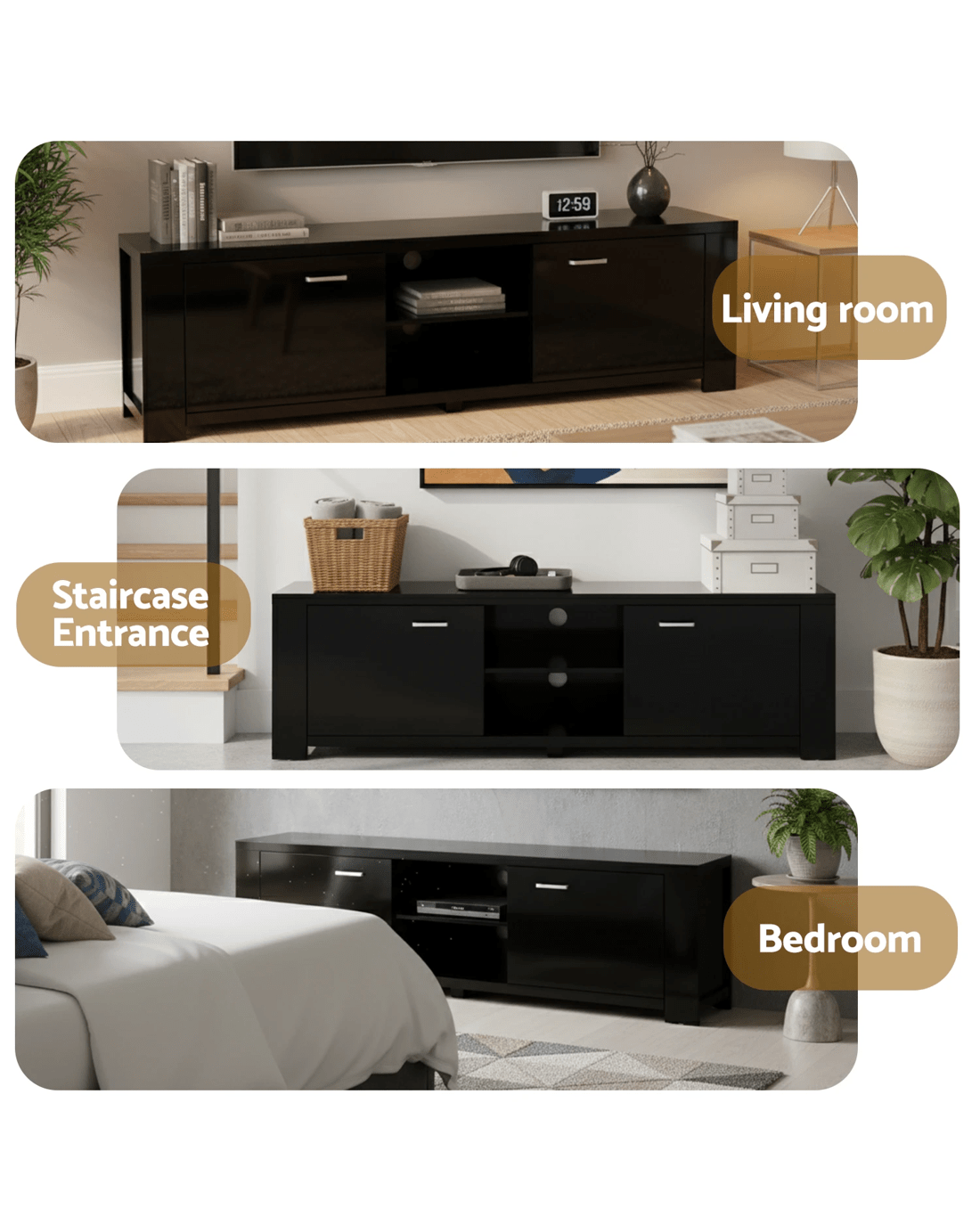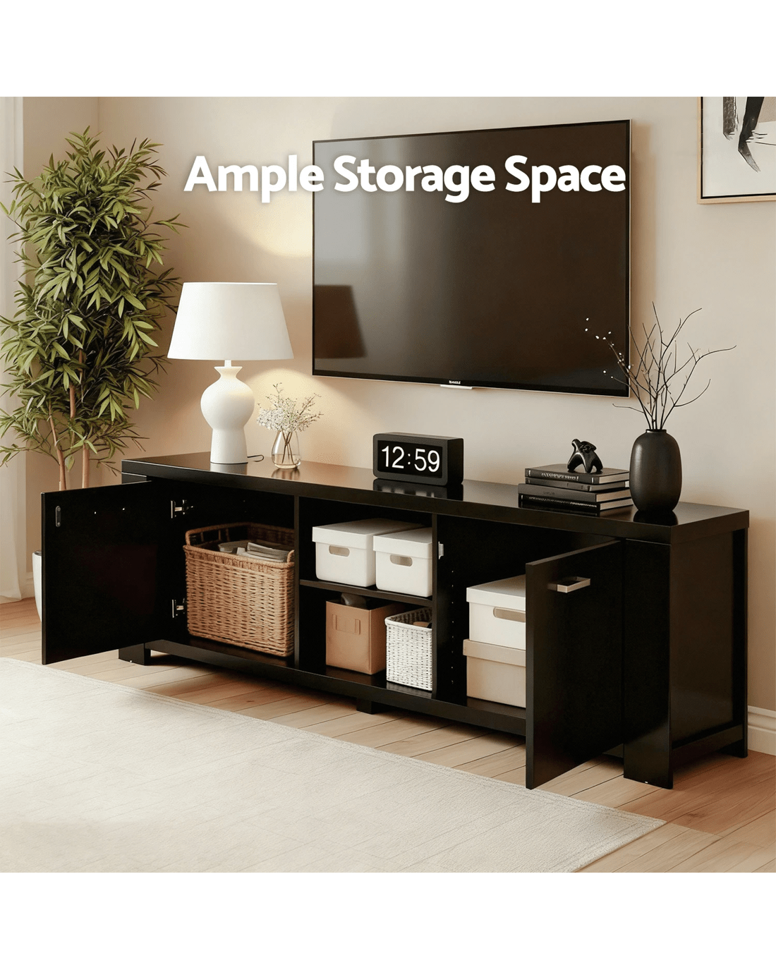 Your treasured home entertainment system deserves the best cabinet for it. And that is why our Artiss Maxi Entertainment Unit is the ideal choice for you. Incorporating a contemporary design and presented with durable and strong 30mm thick honeycomb board and 15mm thick particle board, our entertainment unit displays great craftsmanship with equally fine hardware to ensure trouble-free use every time. The black finish is beautiful and smooth to the touch, making the unit not only good-looking but easy to clean and maintain. And it offers ample storage space with two open shelves and two deep cabinets with magnetic door catches for all your entertainment essentials. Better still, the ensemble features smooth handles for a sleek appearance and pre-drilled holes to keep all your cables tidy. The simple and linear design means that the unit will suit any decoration and be the perfect addition to your modern living room. And best of all, you can also match with other products from the Maxi series for the complete simple-natural look.