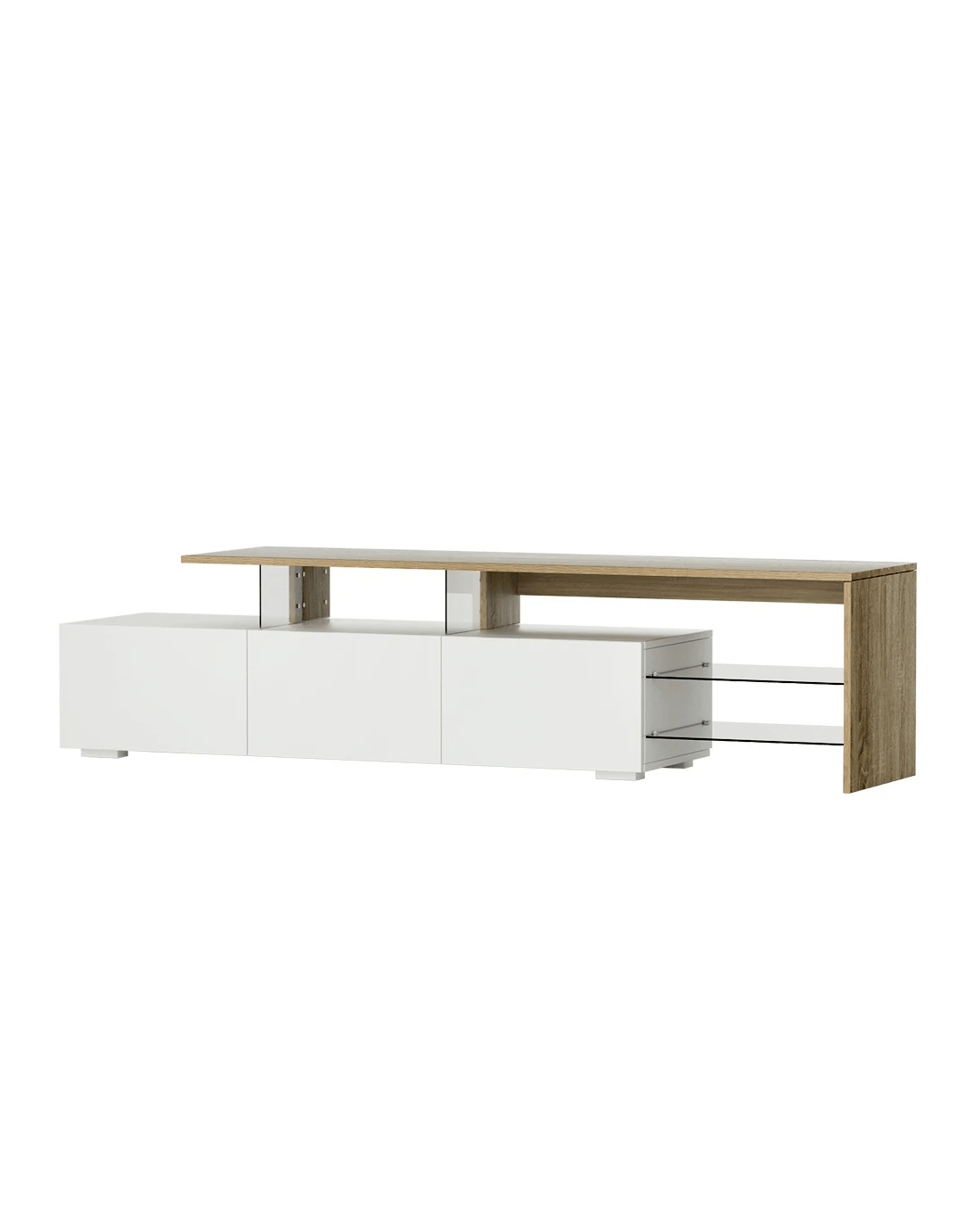 Looking for a stylish and practical entertainment unit to complete your living room or home theatre setup? Our Artiss entertainment unit won't disappoint you. With its wide, low-profile design, and convenient storage, this entertainment unit will enhance your living space and keep it clutter-free. It boasts a unique dual-tone design, which makes it a stylish addition to any living room. The entertainment unit features solid and durable construction. It's constructed from 15mm thick particle board with UV high gloss on the front and melamine finish, which makes it quite sturdy and ensures longlasting use. Our entertainment unit has three spacious drawers, which offers ample space to store other living room essentials such as magazines, remote control, and other stuff. The drawers come with smooth metal runners, which makes for hassle-free operation. It also has two tempered glass shelves to store all your entertainment paraphernalia in an organised manner. Furthermore, this entertainment unit features anti-slip base. It guarantees ultimate stability and prevents the entertainment unit stable from slipping or moving. Bring this uniquely designed entertainment unit for your home today.