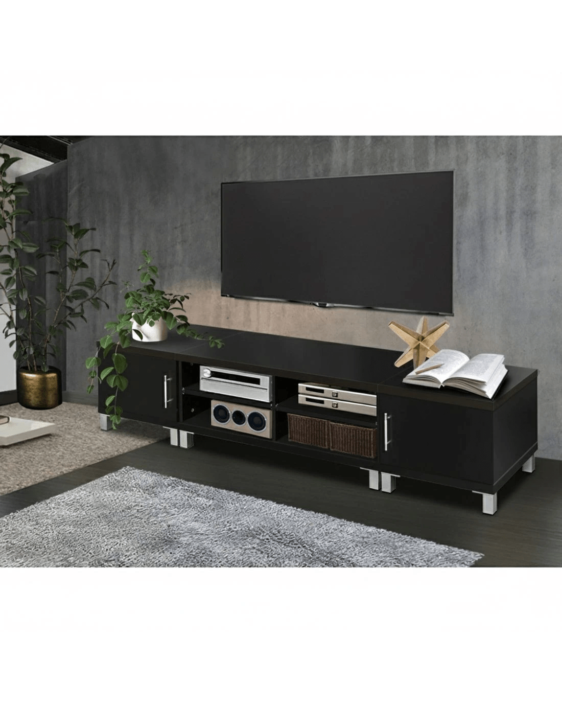 Great in design and quality, this Homey TV stand is ideal for home lovers. It features a contemporary design with elegant square handles and legs with a well finished build. The set provides great storage space with dividers and two independent side cabinets. There is plenty of ample storage space and shelving for your entertainment units and you can organise wires and cords easily and neatly with the TV stand grommets.