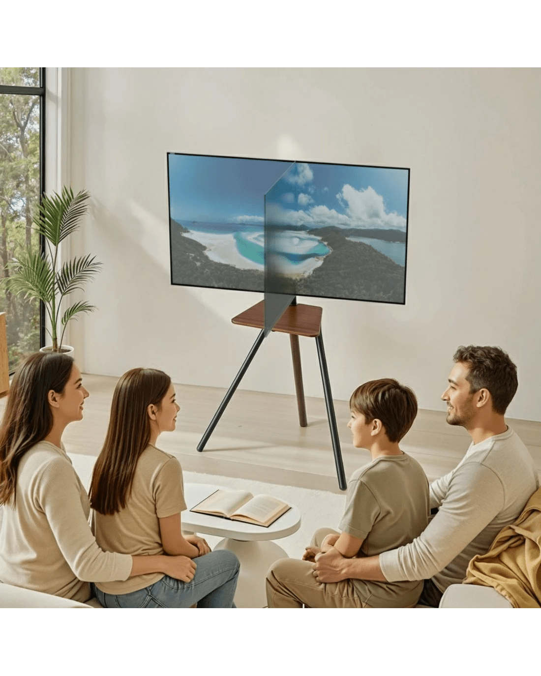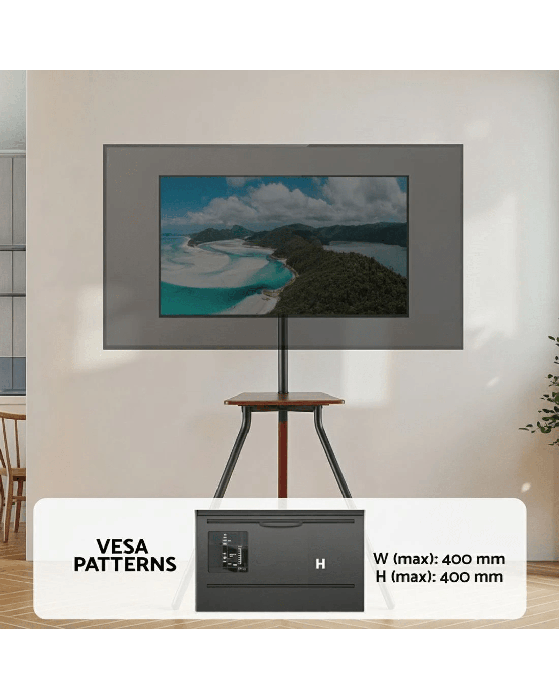 Crafted with a premium solid wood base and reinforced steel framework, this TV Stand combines timeless elegance with industrial durability. Designed to securely hold TVs between 24"–55", it supports universal VESA patterns (up to 400x400mm) for seamless compatibility. The integrated design simply looks stunning, especially with its sleek black finish and easily sits on any flat furniture with minimum fuss. The TV Stand design is also such that you can run cables behind the TV neatly for a well-concealed look. Better still, the screen can swivel up to 90 degrees on either side for preferred viewing angles. Not least, you can safely place a sound bar or mini component system on the base to complete a great entertainment centre.