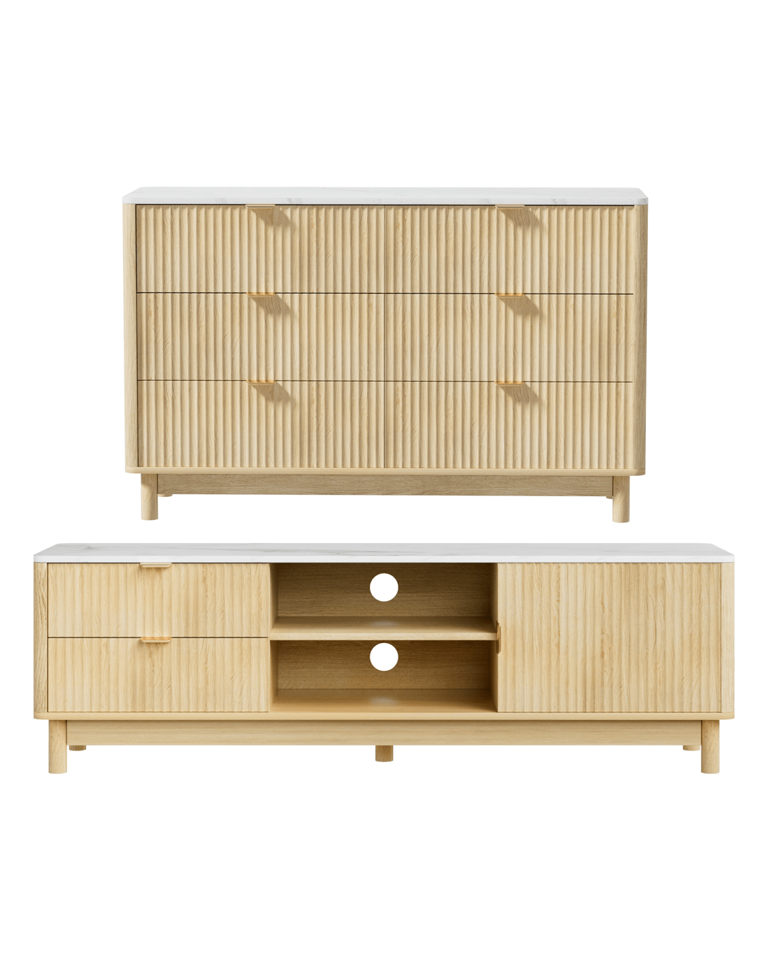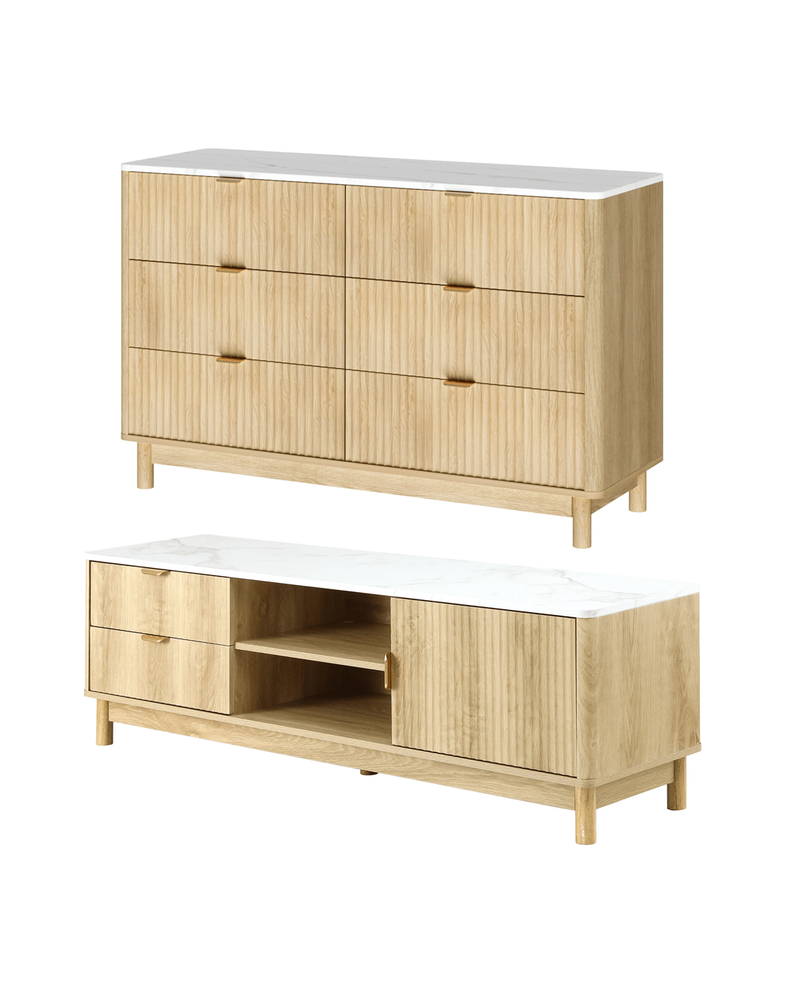 Artiss TV Unit & Chest of Drawers Set Solid Wood Legs - Natural