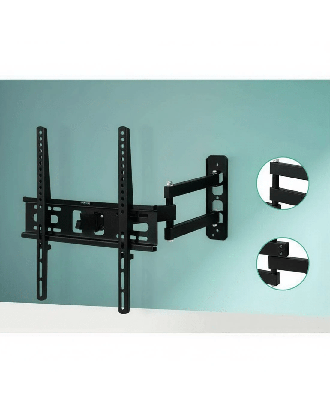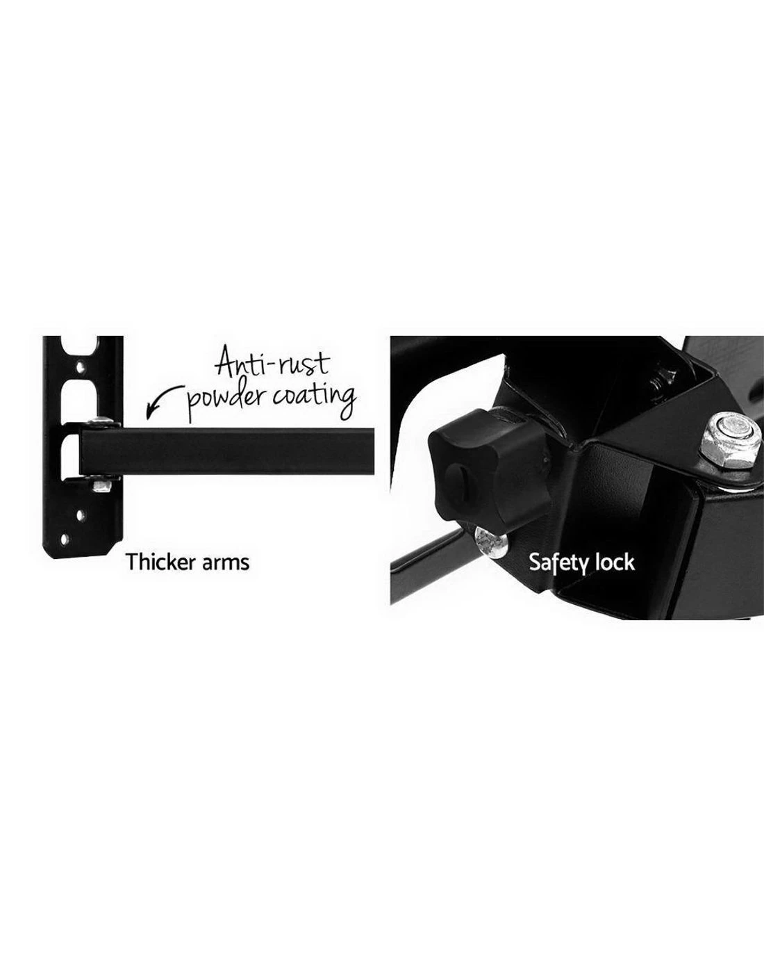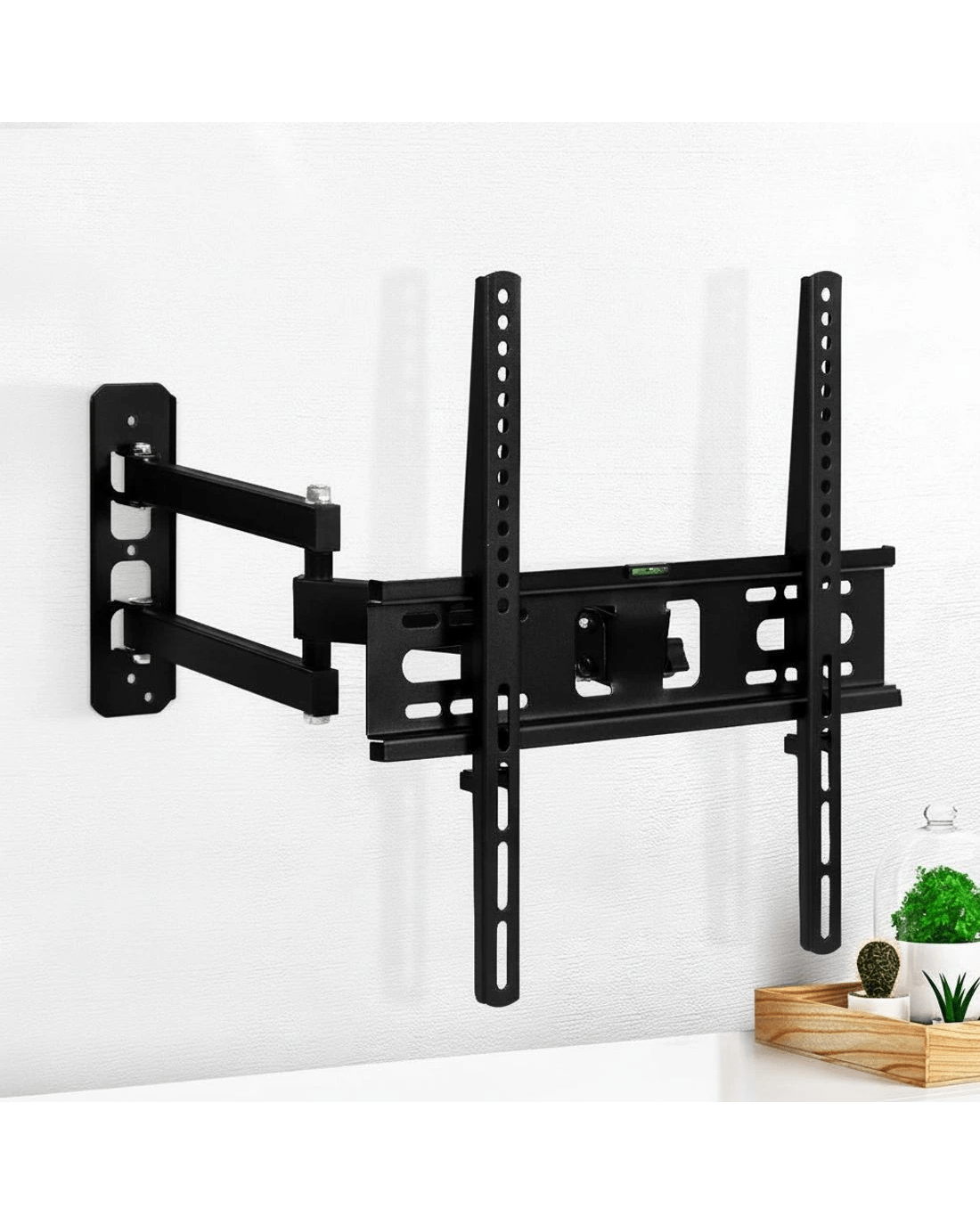 With universal compatibility with most major TV brands, our Artiss TV Wall Mount is designed to add a seamless touch to your entertainment set-up. Crafted in solid black powder-coated iron, the TV wall mount features a 1.5mm thick frame that can handle a maximum weight of up to 25kg and has flexible mounting with various VESA measurements to firmly affix any TV screen from 23" to 55". Better still, the mount allows for tilt and swivel so that you can adjust your TV to suit your most comfortable eye line for more enjoyable viewing. Plus, the three-arm frame also enables the TV to be extended or retracted when required. Not least, a built-in safety bolt lock keeps the TV firm and steady at all times. Suitable for concrete or brick wall use, the Artiss TV Wall Mount is definitely the way to space-saving epic TV entertainment.