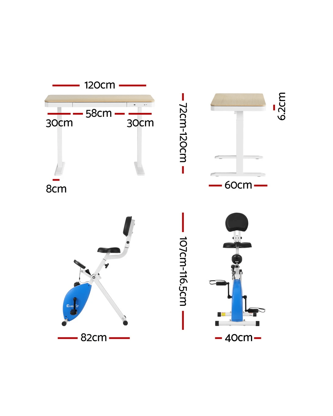 Artiss Under Desk Exercise Bike with 120cm Automatic Standing Desk Magnetic Resistance Oak - Multi