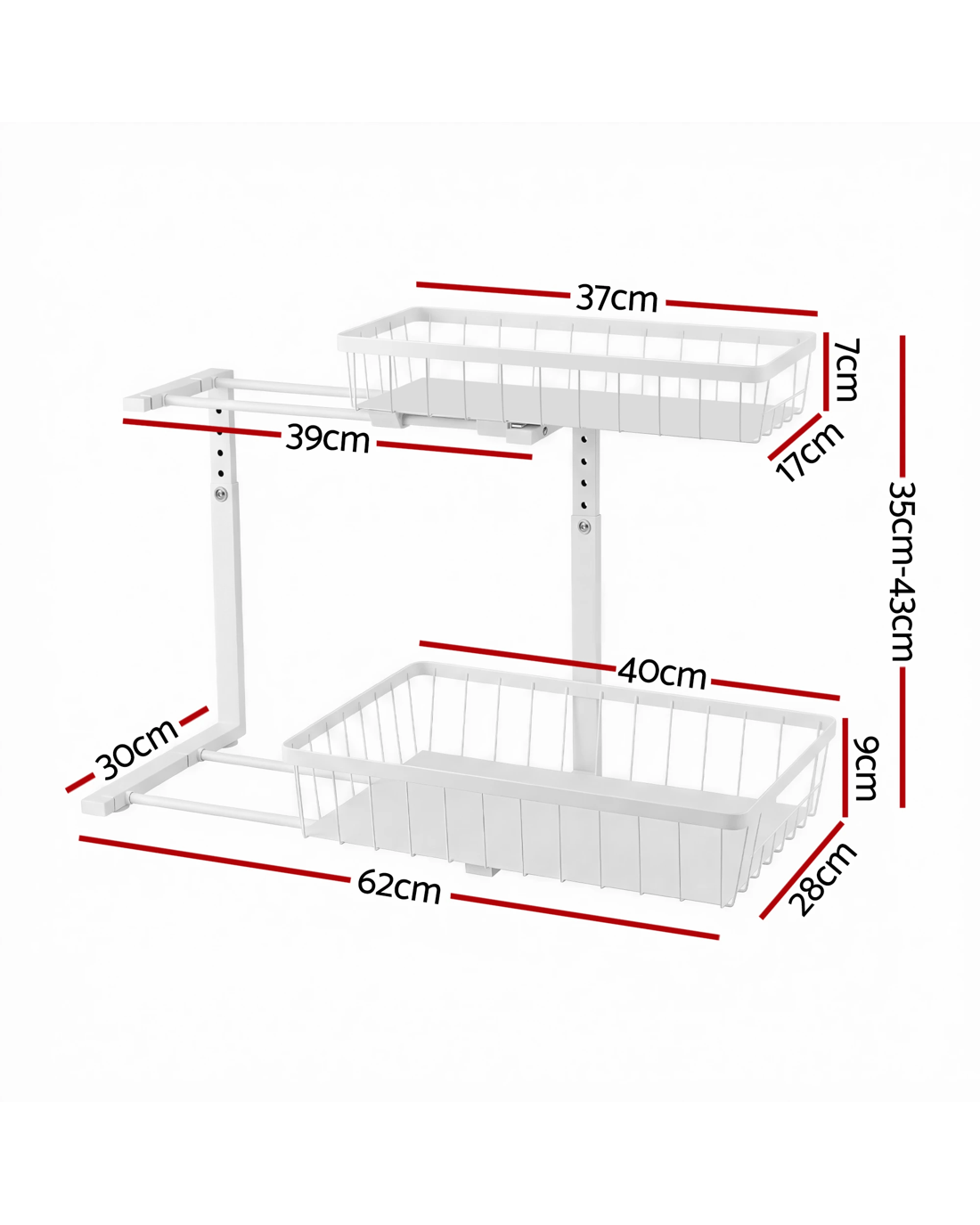 Maximise every inch of storage with the Artiss Under Sink Organizer. Its unique L-shape design neatly tucks behind pipes, transforming wasted space into a functional area. The unit features 2 handy slide-out drawers that bring items in the back within easy reach, ending the need to dig through clutter. With 5 adjustable height settings, it custom-fits under most kitchen or bathroom sink cabinets. This storage solution is perfect for organising cleaning products, soaps, and spare toiletries, turning a chaotic under-sink area into a model of order and efficiency.