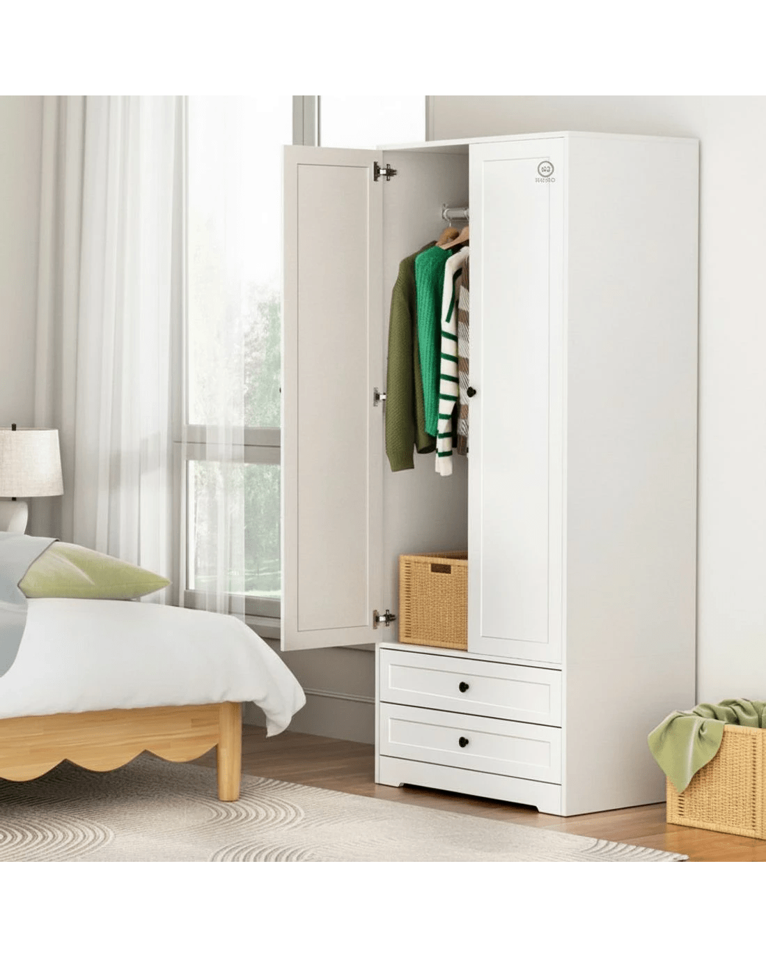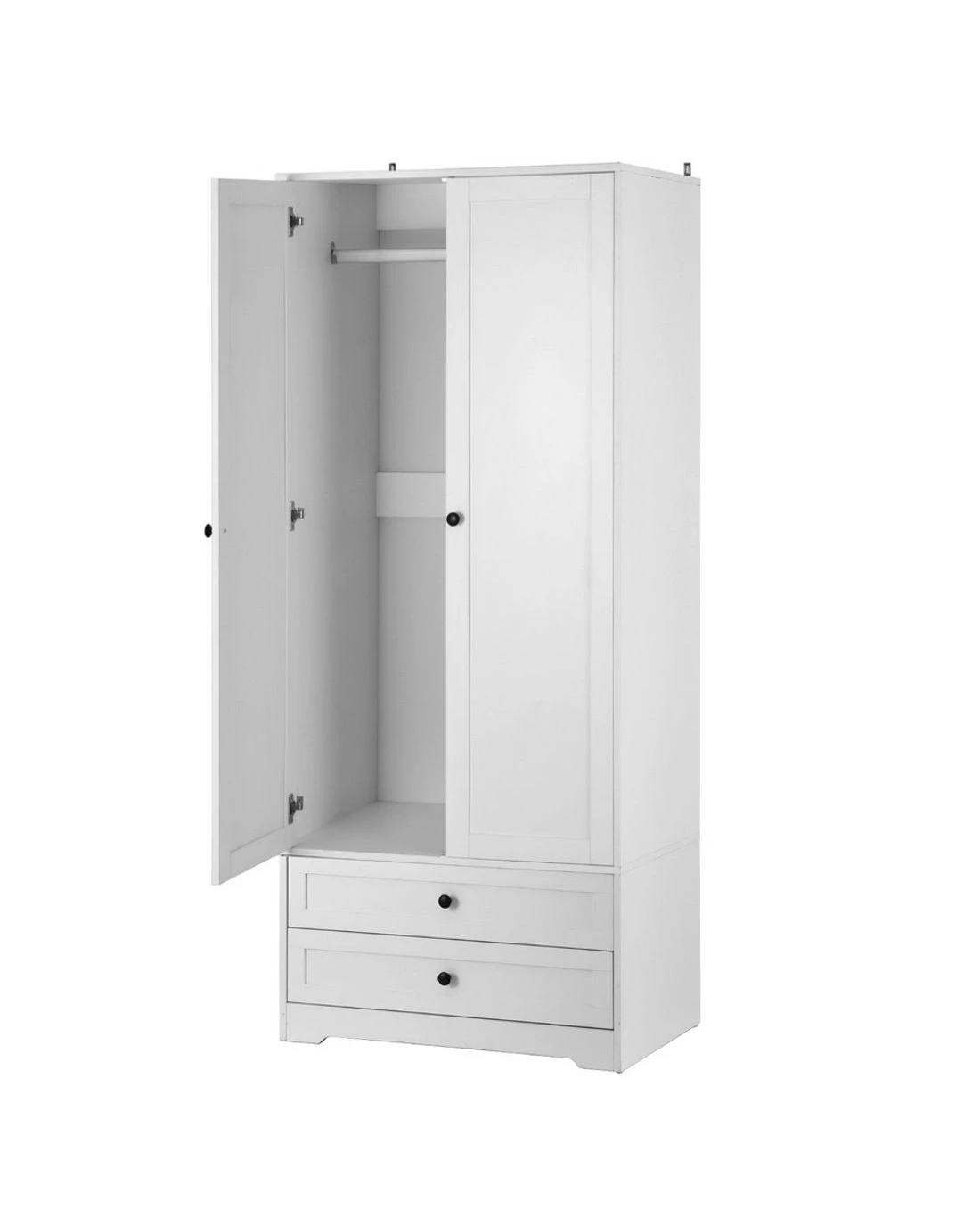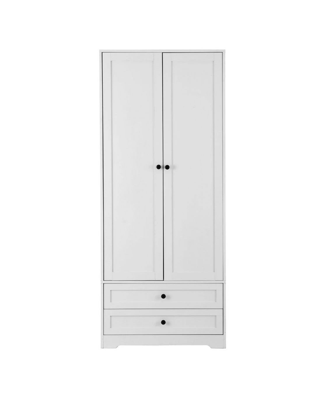 Artiss wardrobe combines 2 storage drawers and 2 magnetic doors for versatile clothes storage, featuring metal handles, hinges, and a detachable hanging rod for lasting use. Designed for Aussie homes, it includes smooth sliding runners, wall attachment kit, and high weight capacity to secure heavy loads. Easy assembly and easy-clean surfaces simplify maintenance, while its compact build suits tight spaces. Ideal for organised, fuss-free living.