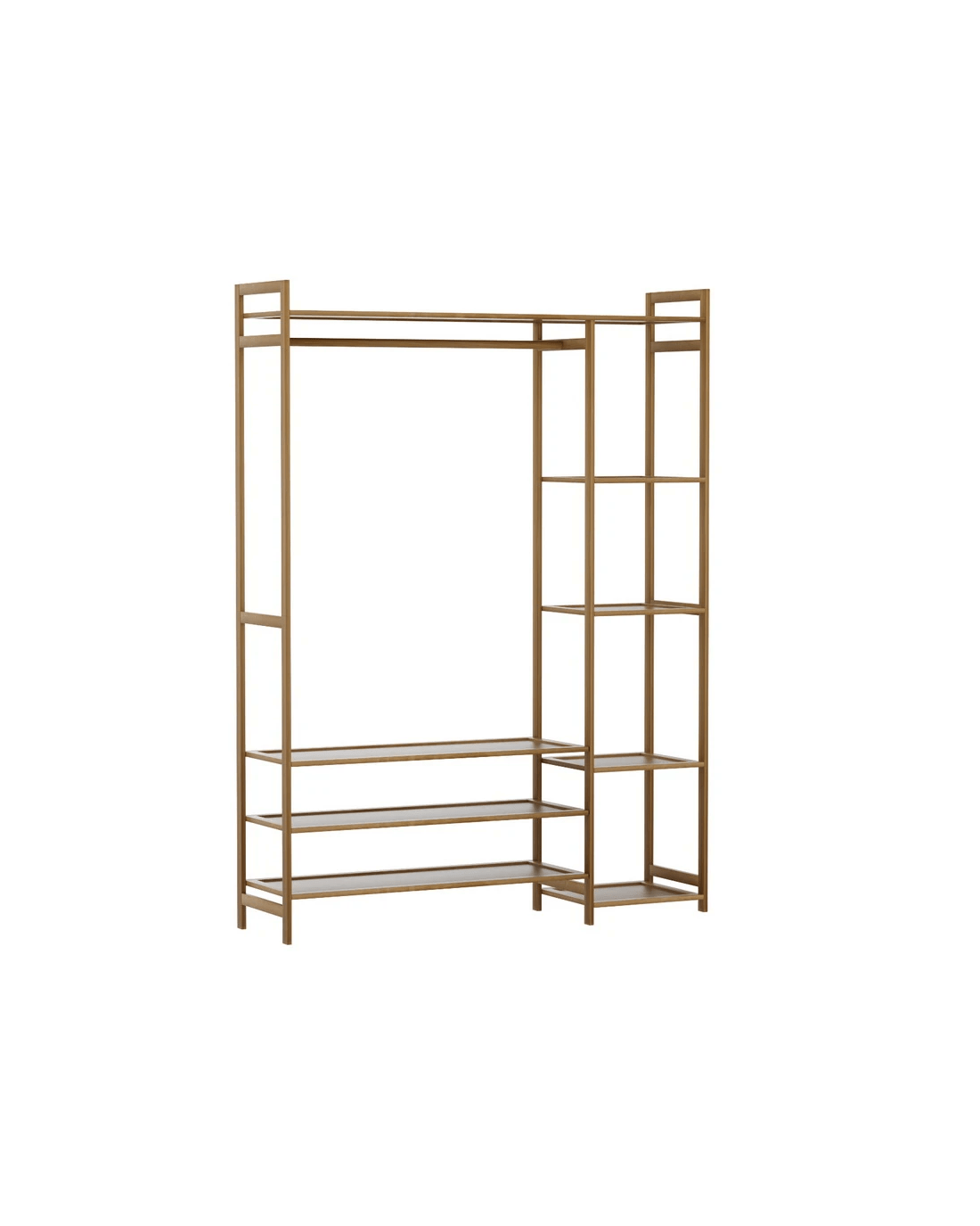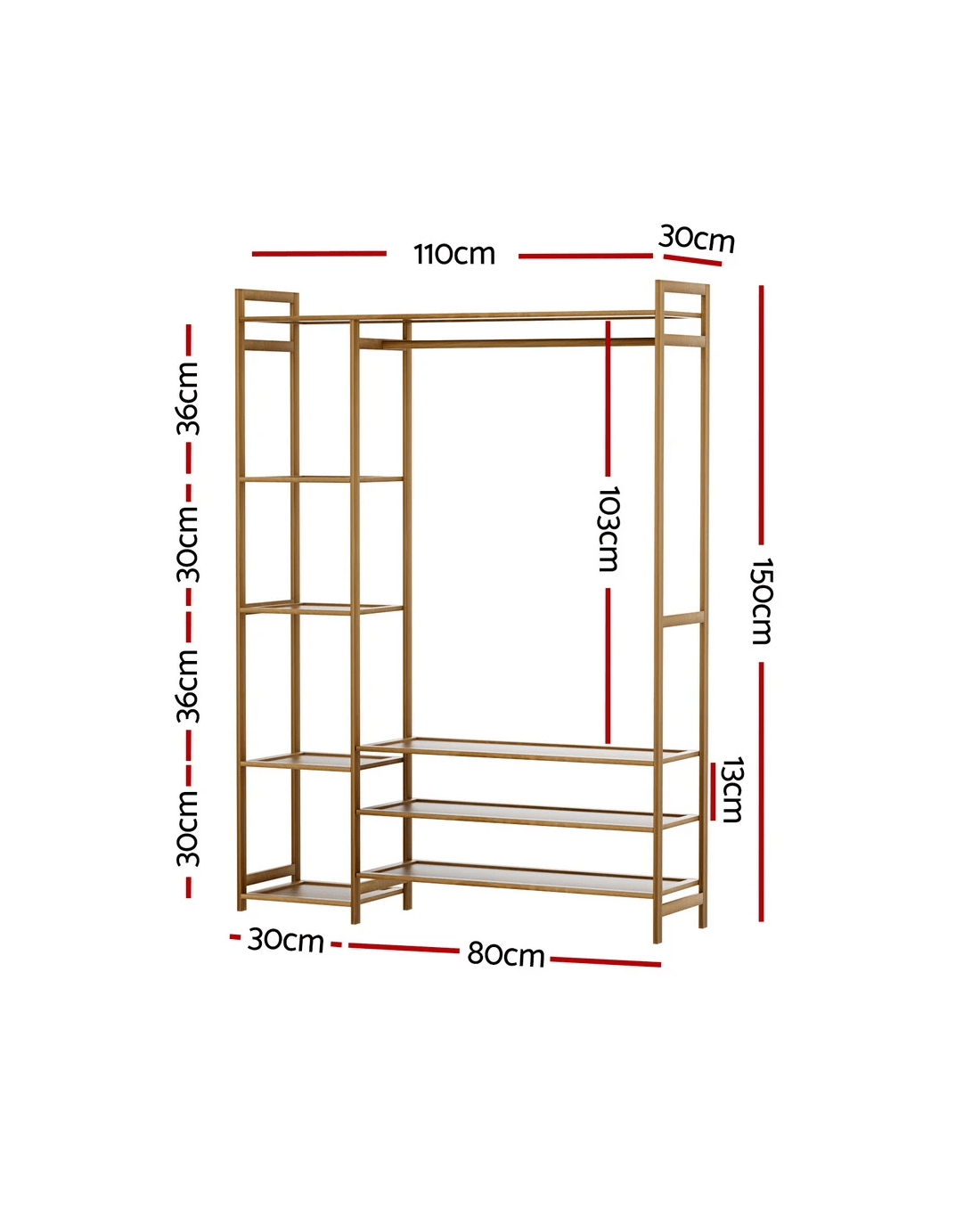 Organise your clothes with ease and in style with the Artiss Garment Rack. With multiple adjustable shelves, a top shelf with a raised edge and a hanging rail, you'll have plenty of space to hang and display your garments. Made from sturdy bamboo construction and featuring a smooth surface, this garment rack is not only durable but also adds a touch of elegance to any room. Additionally, the anti-slip floor protectors keep your floors safe from scratches. Lightweight and portable, this garment rack is easy to move around and assemble. Additionally, cleaning is easy, making it a convenient choice for your wardrobe needs. With the Artiss Garment Rack, your home will be tidy in no time.