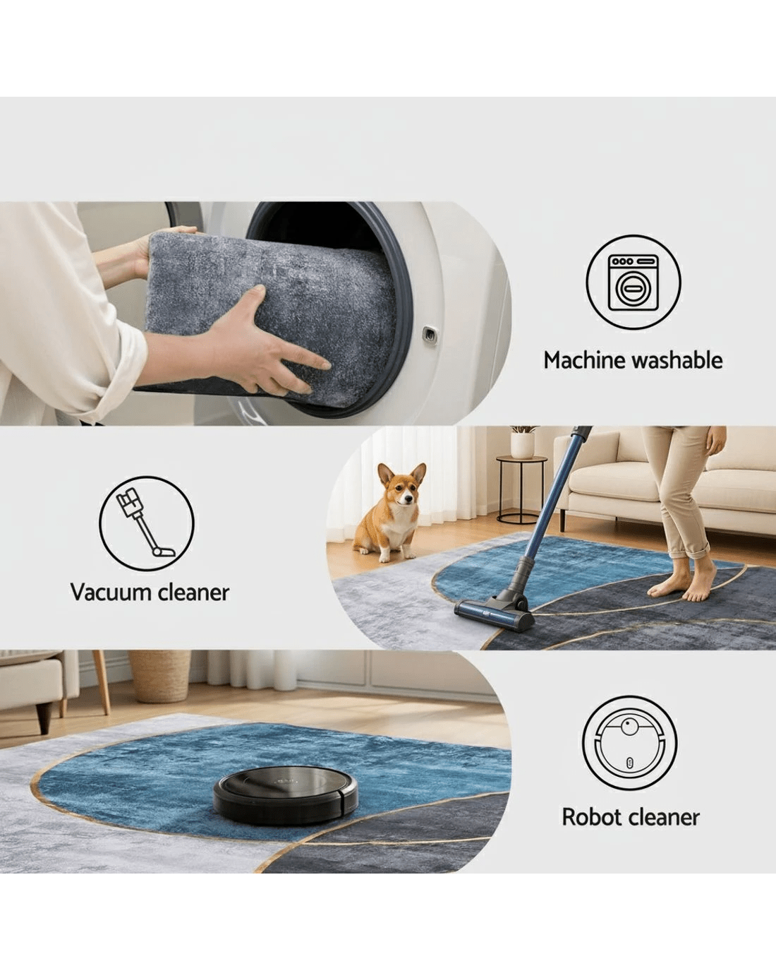 Refresh your home this Spring with the Artiss Washable Rug. This large 200x290cm area rug features a stylish transitional geometric design with a subtle faded finish. Its ultra-thin, low-profile pile is fully machine washable, making it the perfect, easy-care floor carpet for any busy living room.