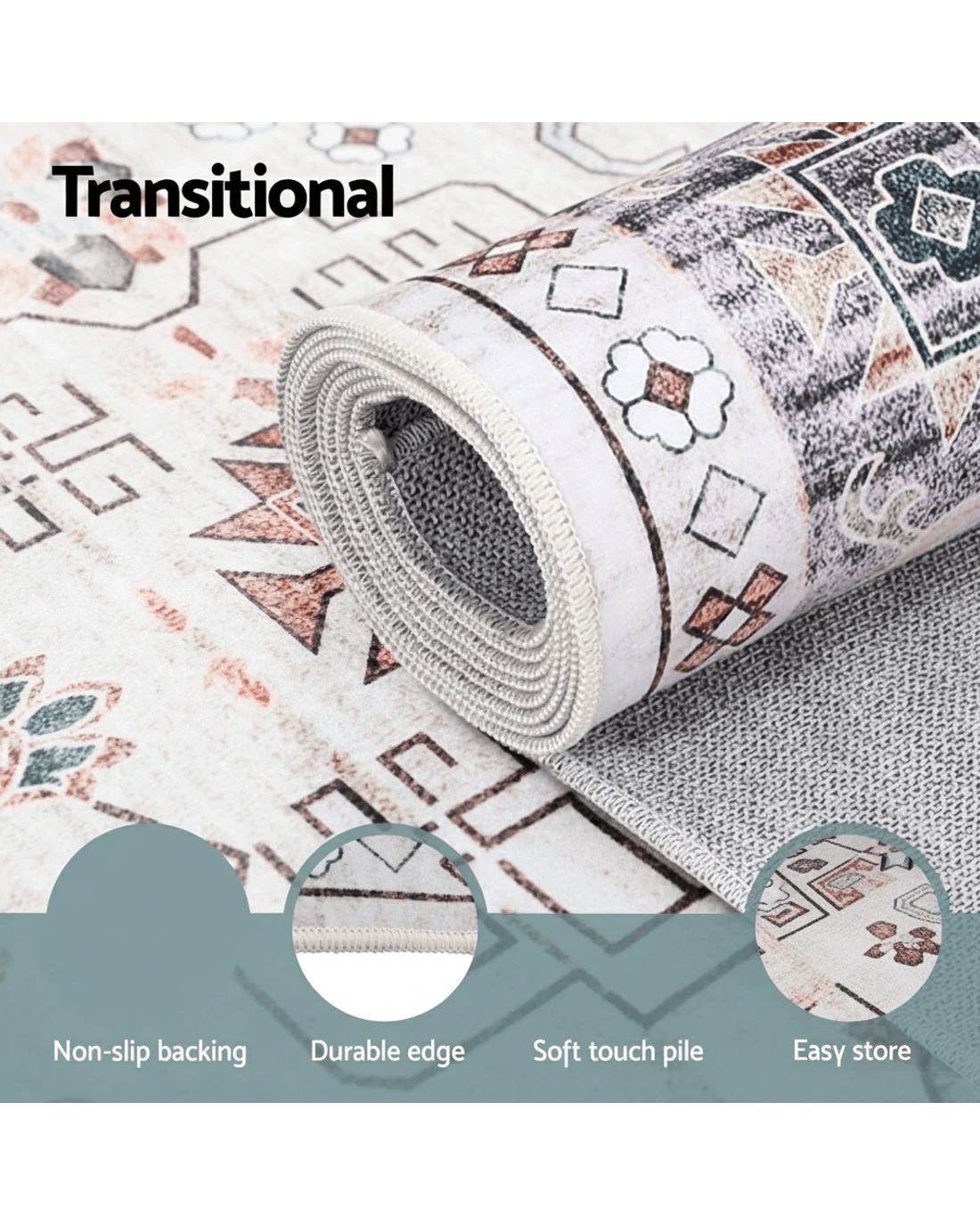 Refresh your home this Spring with the Artiss Washable Rug. This large area rug features a stylish transitional geometric design with a subtle faded finish. Its ultra-thin, low-profile pile is fully machine washable, making it the perfect, easy-care floor carpet for any busy living room.