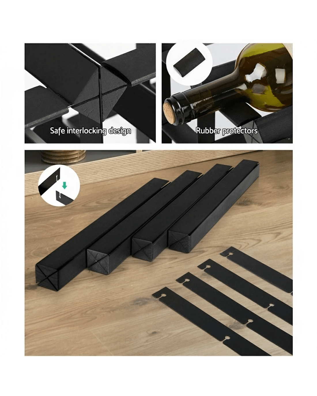 Store or display your wines in style with our Artiss Wine Rack. No need to have them scattered around in a cupboard, as this wine rack can hold up to 42 bottles in a tidy structure. Made of quality pine wood and heavy-duty steel, the rack is made to last and will make sure your wines are in good hands. And on top of providing stable storage, it is also a great showcase for your treasured wines. Easy to assemble with a safe interlocking design, it will not take long before you can show them off to your friends and family. Use it at home, in your private wine cellar or in restaurants and cafes to make a statement about your fine wines. For the wine connoisseur in you, nothing looks quite as stunning and beautiful as showcasing your vintages in our exquisite wine rack.