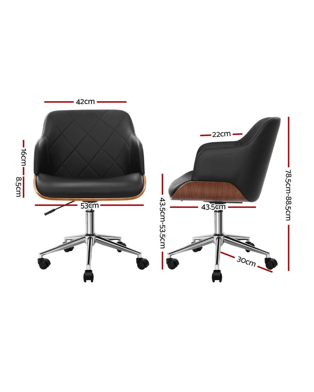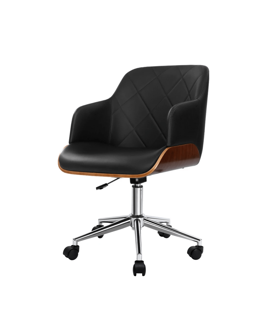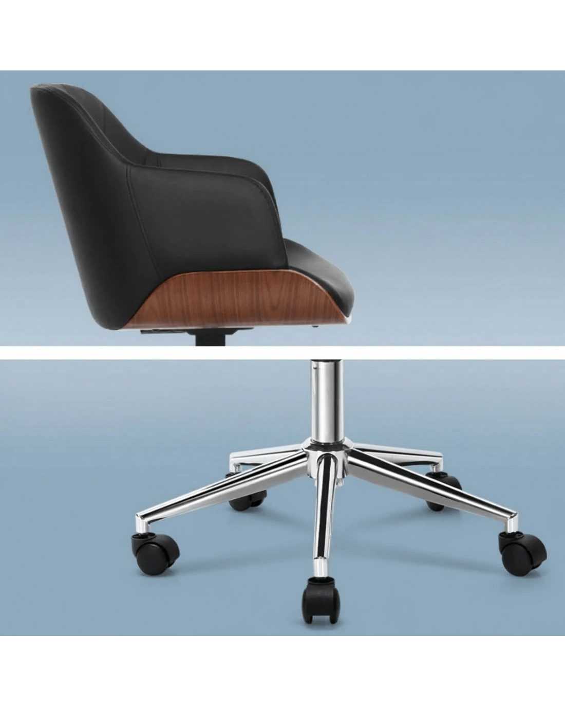 Wood, PU leather, and chrome in total harmony. Such is the exquisite design of our Artiss Portia Office Chair. The seat is meticulously crafted with a contoured wooden frame, cushioned support, and premium PU leather upholstery, so you and your team can enjoy working in comfort and style. Getting around the office is no problem with 360° rotation and a corrosion-resistant chrome base with five smooth castor wheels. Adjust the height with the TUV-certified gas lift, so you can be in the perfect position all day. Finally, rest assured that our furniture won't fall apart thanks to the meticulous craftsmanship. Bring a touch of contemporary living to your home or office interior with our Portia Office Chair.