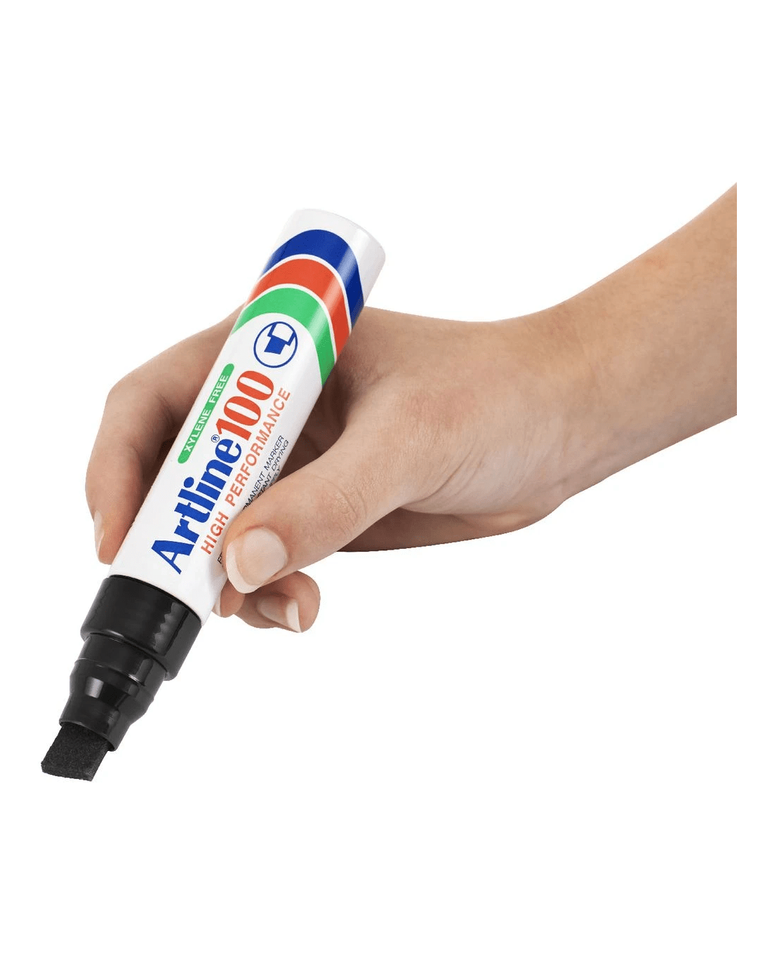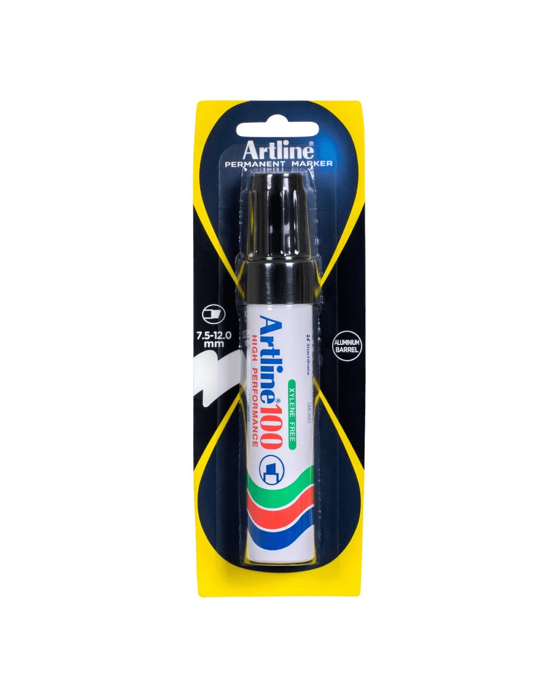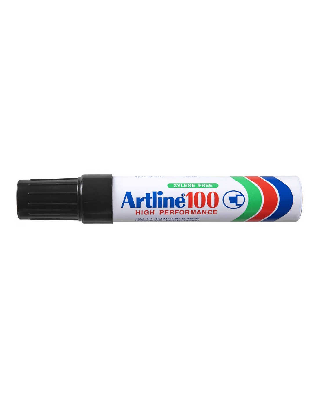 This Artline 100 Jumbo Permanent Marker has a large, chisel nib which is perfect for writing both thick and thin lines. The marker contains fast drying ink which will mark a range of surfaces including glass, steel and plastic.