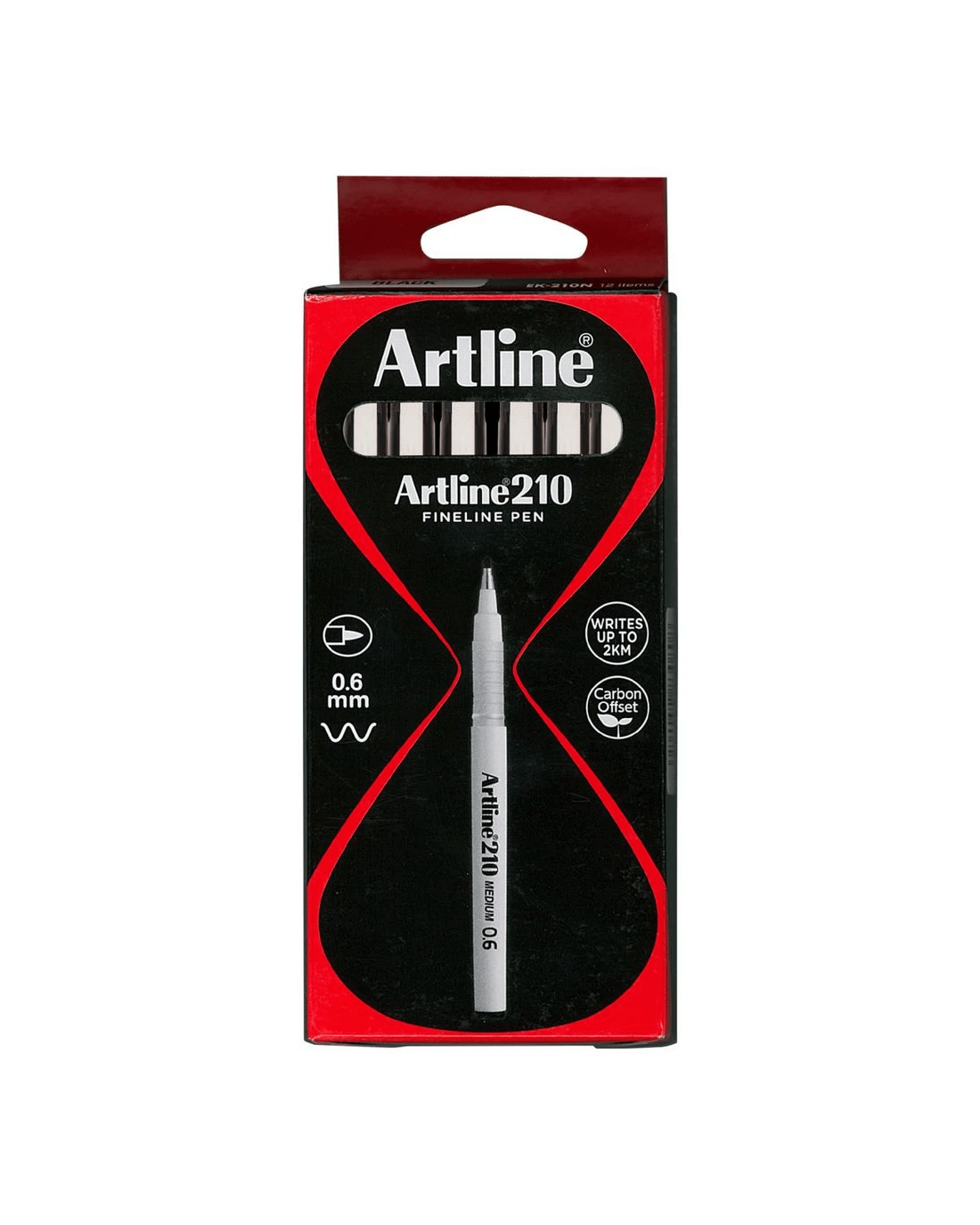 Sold by OfficeworksArtline 210 Fineliners 0.6mm Black 12 Pack
