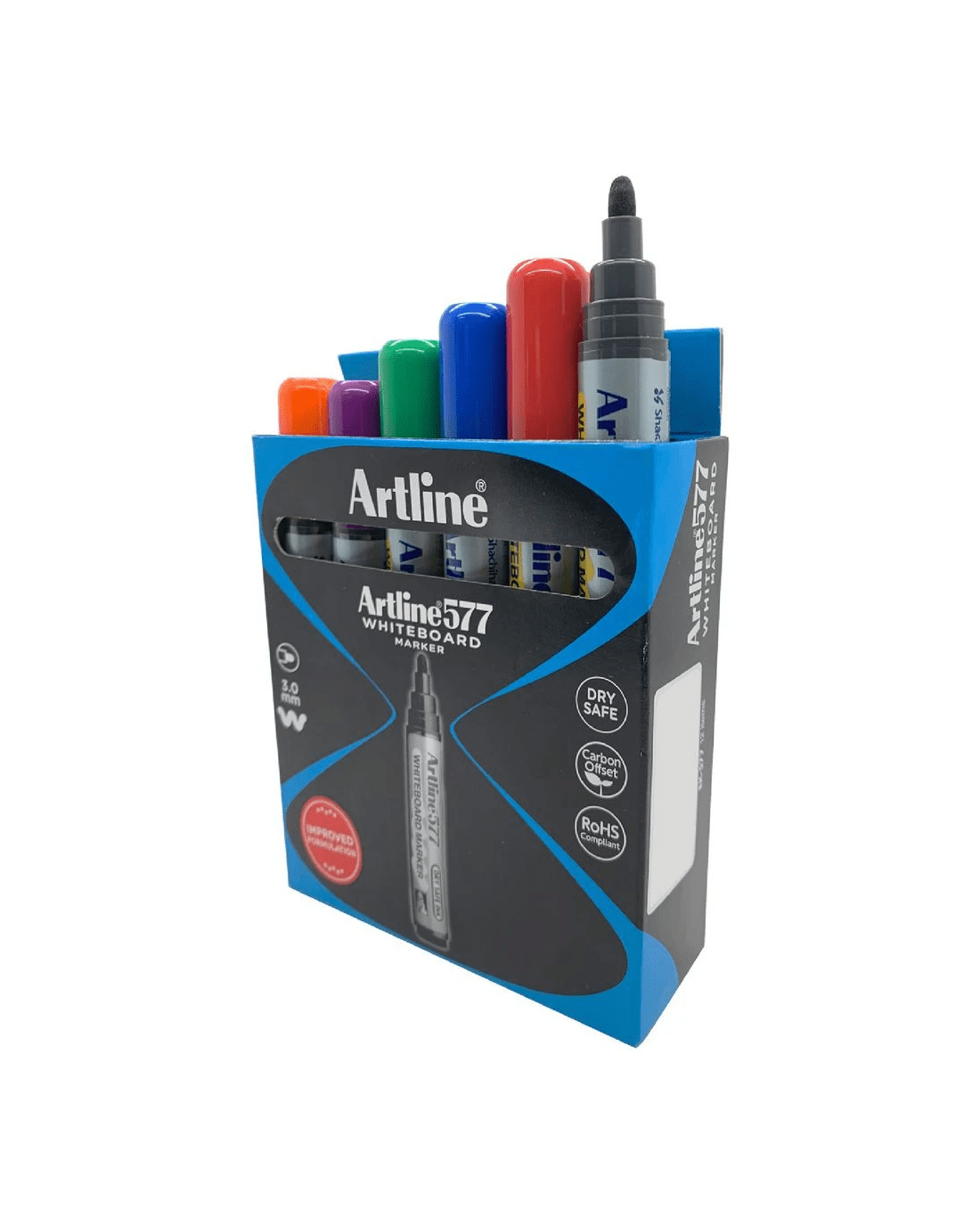 These Artline 577 Whiteboard Markers are a great option for any classroom or workspace that uses a whiteboard. They contain a low odour, alcohol based and xylene free ink which uses pigments to produce bold colours.