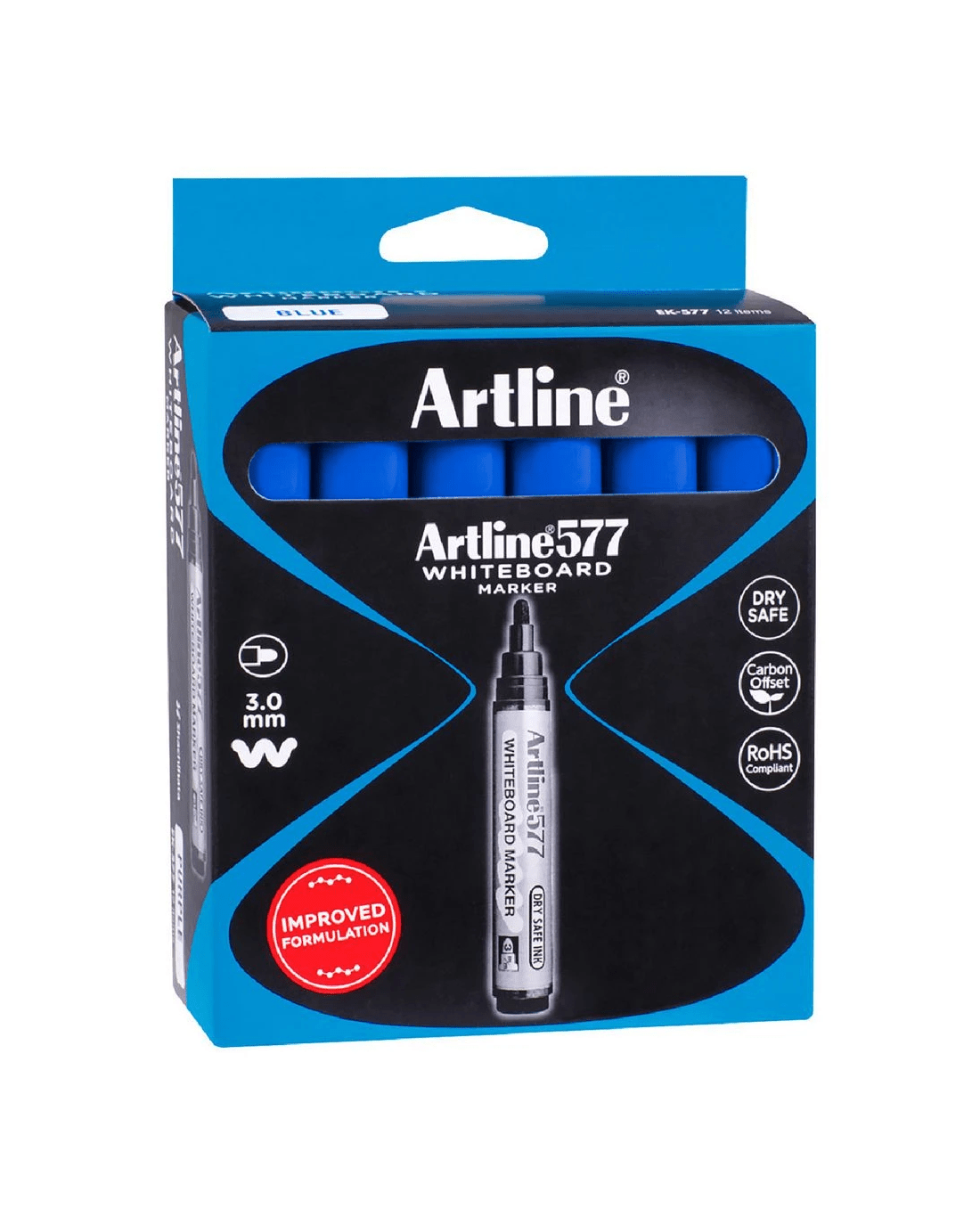 These Artline 577 Drysafe Whiteboard Markers have a unique ink formula that lets you leave the cap off for up to 48 hours without drying out. The alcohol-based pigment provides bold colours with a low odour. They are xylene free and suitable to use on electronic whiteboards.