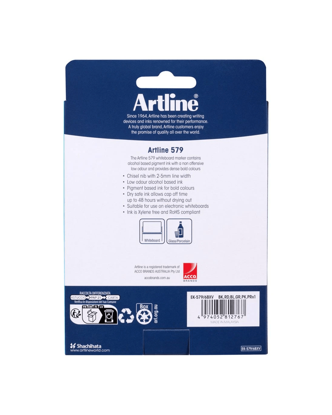 These Artline 579 Whiteboard Markers are ideal for use on your whiteboard or dry erase surface. Each marker contains alcohol based pigment ink which delivers bold, dense colours that are sure to stand out on your board.